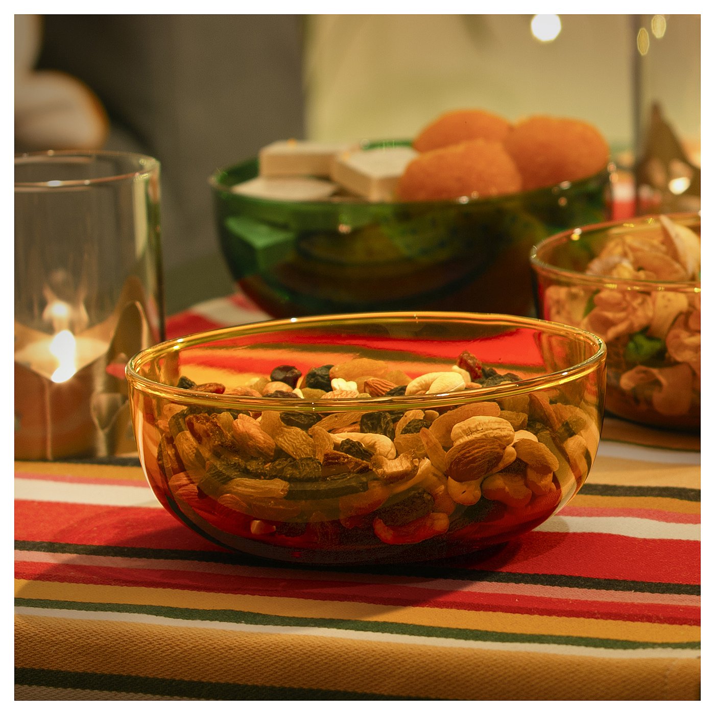 Желтая миска из выдувного стекла органичной формы идеально подходит для хранения конфет, сухофруктов или ароматного потпури для приветствия гостей. Элемент коллекции AROMATISK.