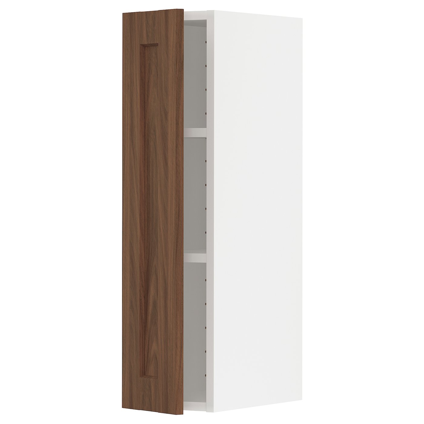 Система METOD предлагает неограниченные возможности для создания кухни вашей мечты. В сочетании с фасадами ENKÖPING из пленки, имитирующей орех, с тонкой структурой текстуры, вы получаете классический вид с теплым древесным характером.