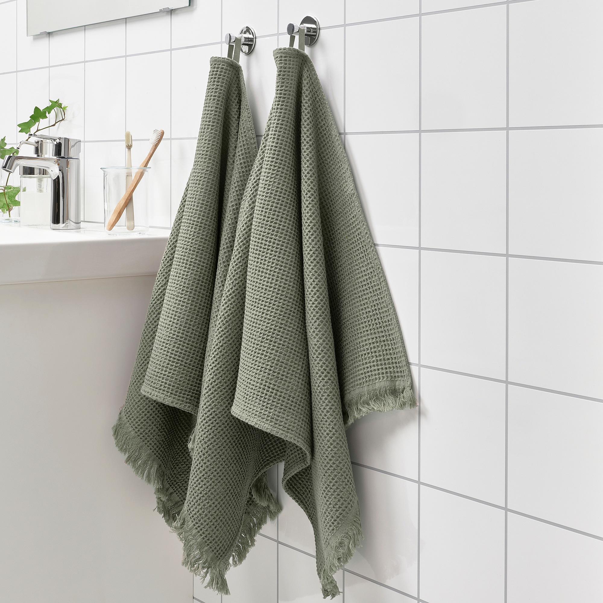 Землистый, светло-зеленый оттенок полотенца VALLASÅN получен из отходов выращивания сабальной пальмы. Используя палитру природы, вы можете высушить руки этим мягким полотенцем в оттенках, которые предлагает природа.