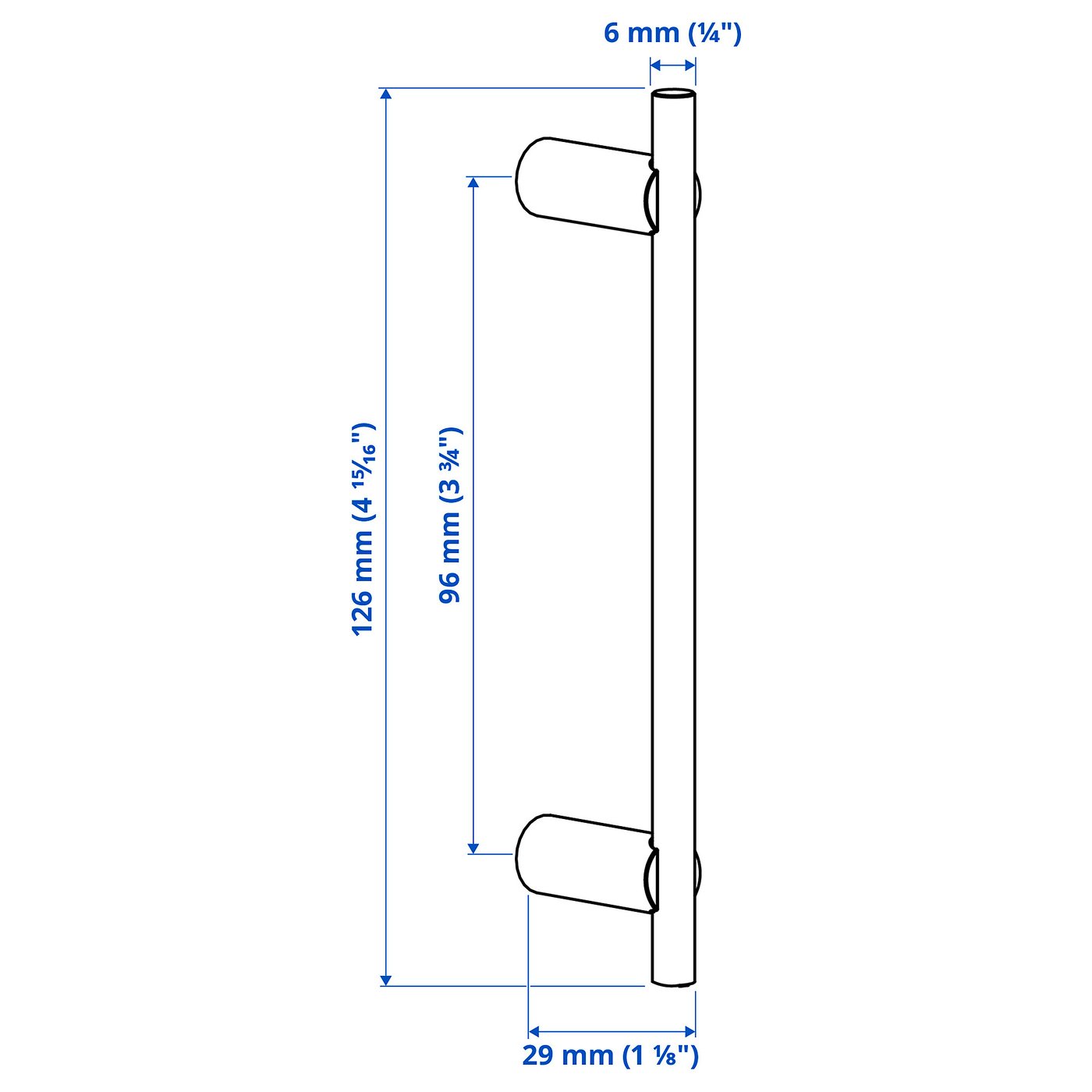 Длина: 126 ммДиаметр просверленного отверстия: 5 ммРасположение отверстий: 96 ммГлубина: 29 ммКоличество в упаковке: 2 шт