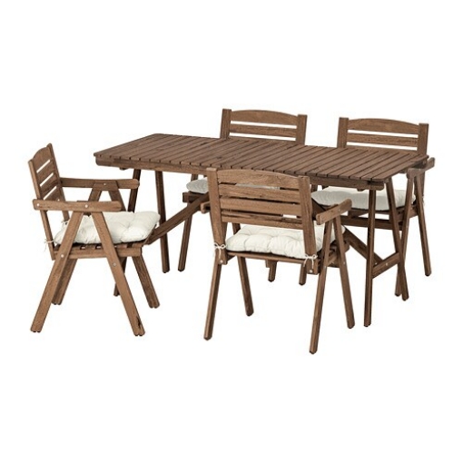 FALHOLMEN — это аккуратный набор мебели из экологически чистой акации, в которой можно прекрасно пообедать на свежем воздухе. Штабелируемые стулья освобождают место, когда у вас нет друзей на ужин.