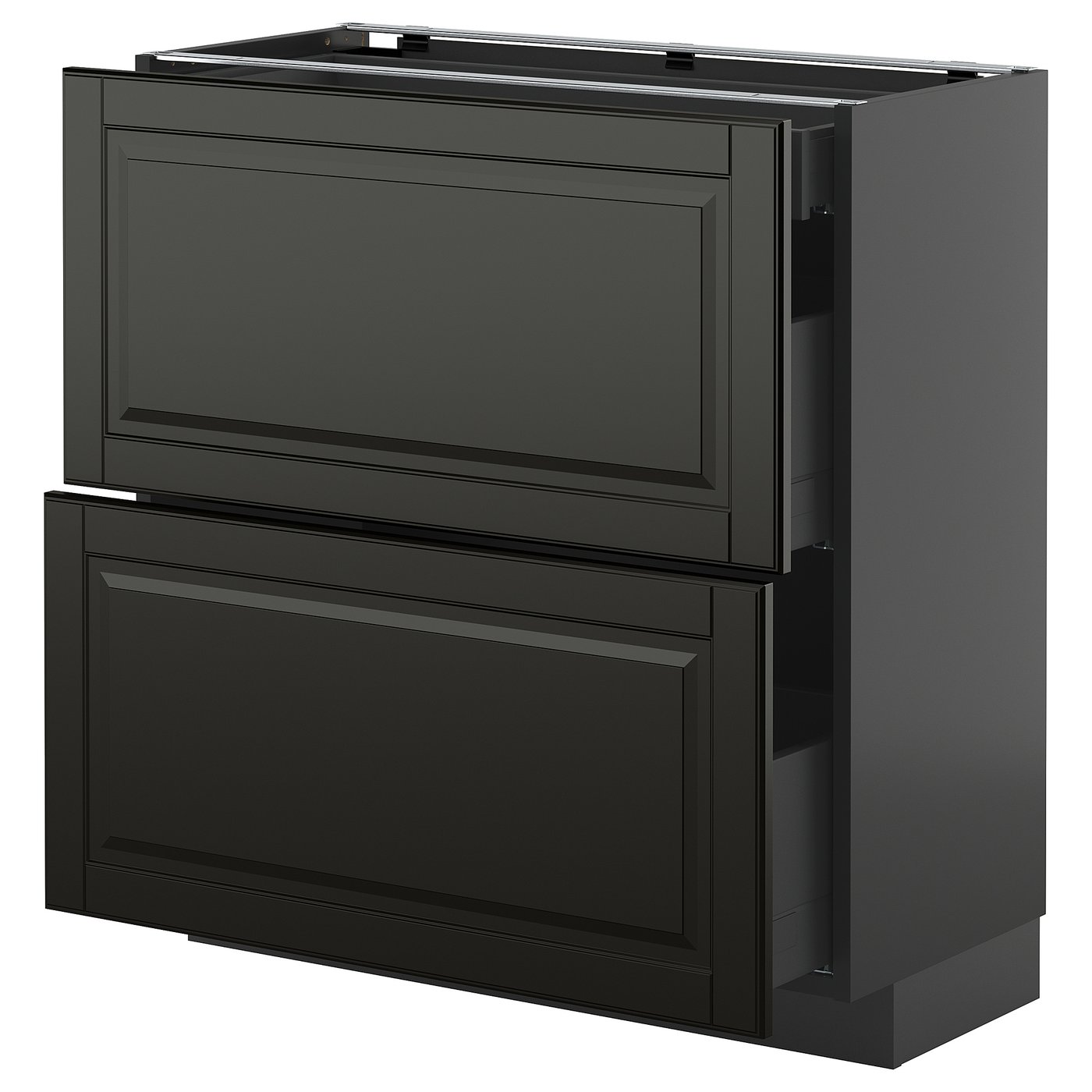 Система METOD предоставляет неограниченные возможности для проектирования кухни вашей мечты. В сочетании с черными фасадами BODBYN со скошенными краями она поражает теплой эстетикой и изысканностью.