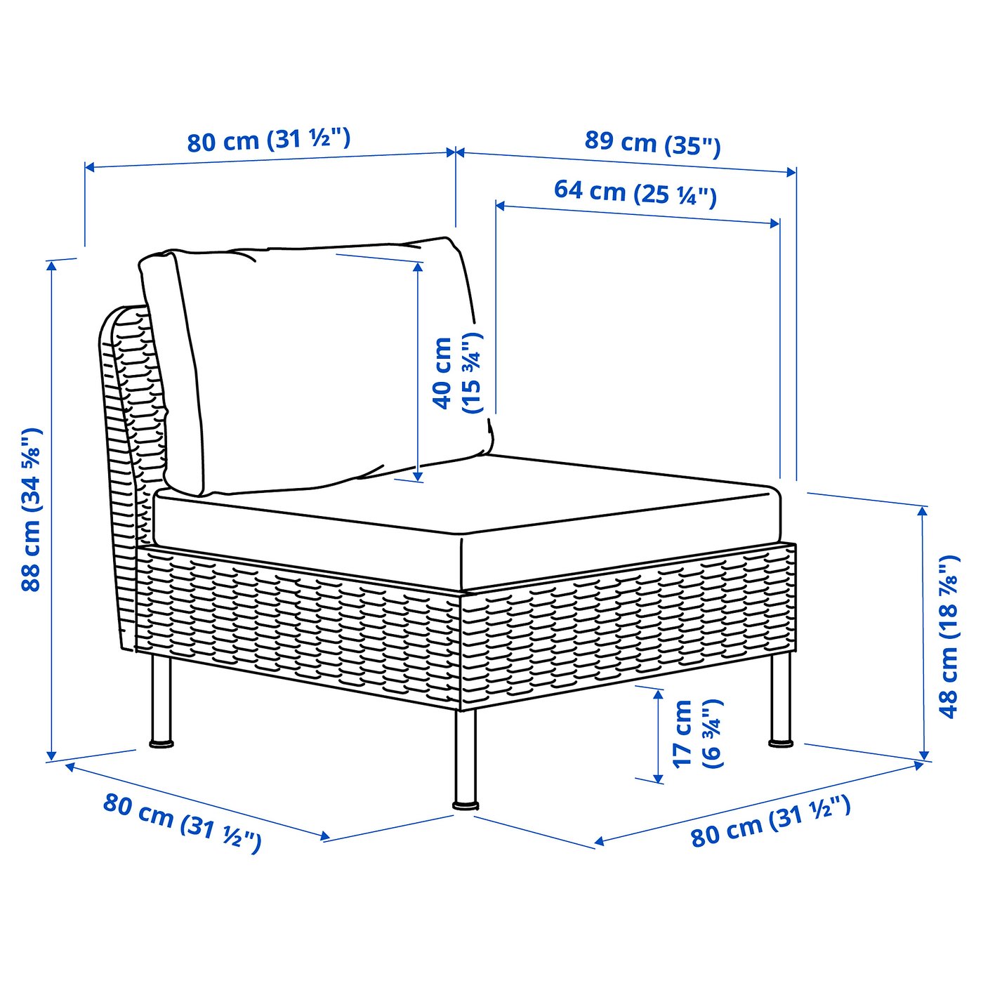 Глубина сиденья: 64 см