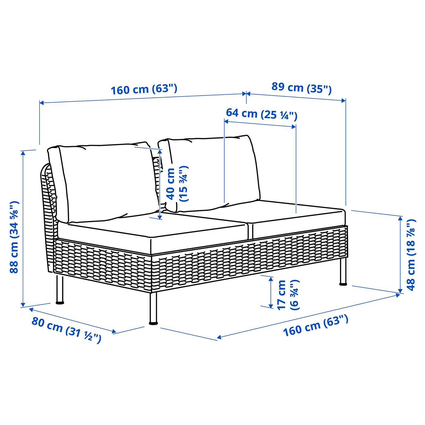 2-местная секция модульного дивана, техноротанг для наружного использования, темно-серый