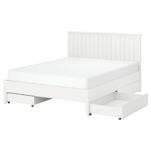 Дно кровати LÖNSET имеет слегка изогнутые рейки и зоны комфорта, которые поддерживают позвоночник в естественном положении, а открытая конструкция обеспечивает циркуляцию воздуха, благодаря чему матрас дольше сохраняет свежесть.