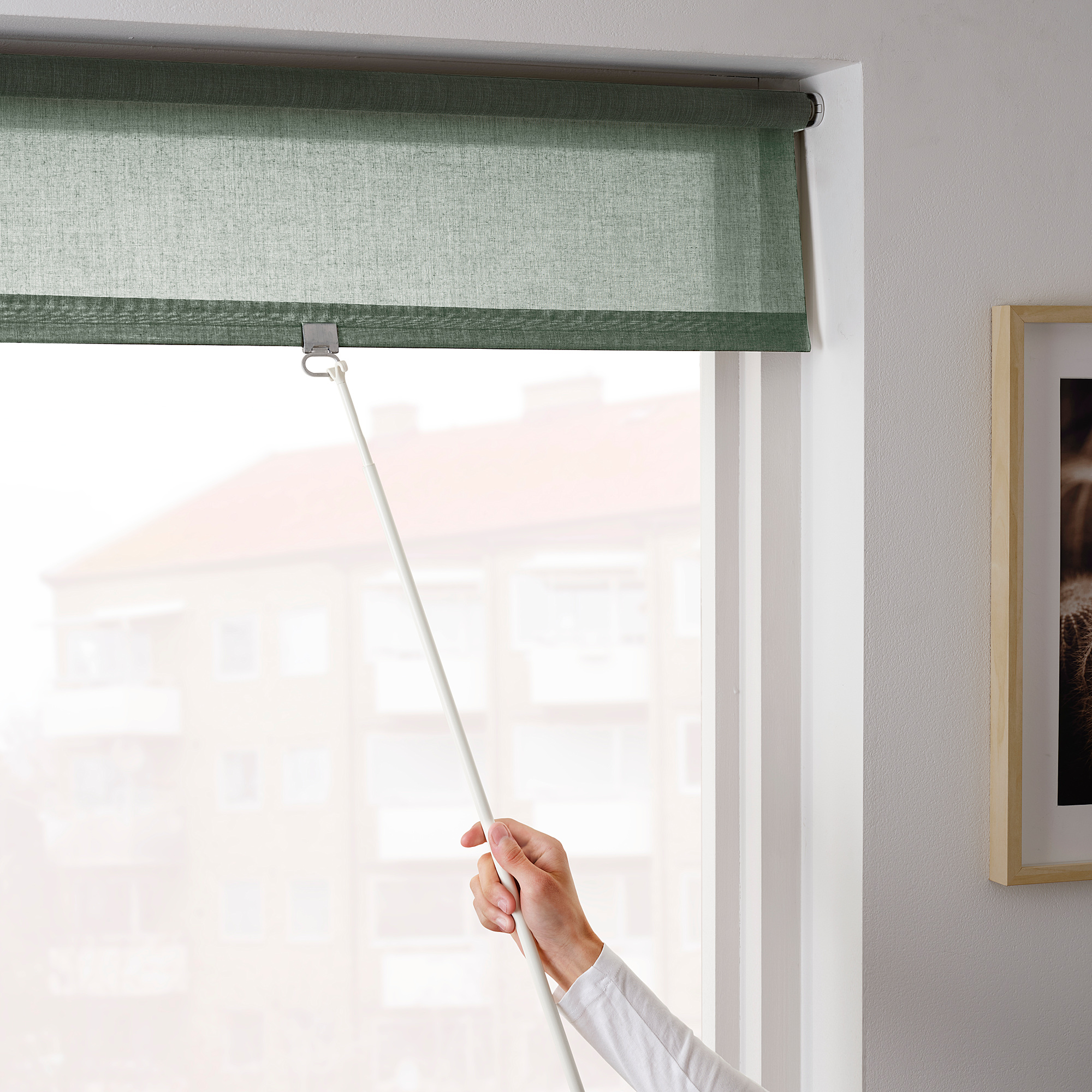 Стержень RIKTIG позволяет легко свернуть рулонную штору.