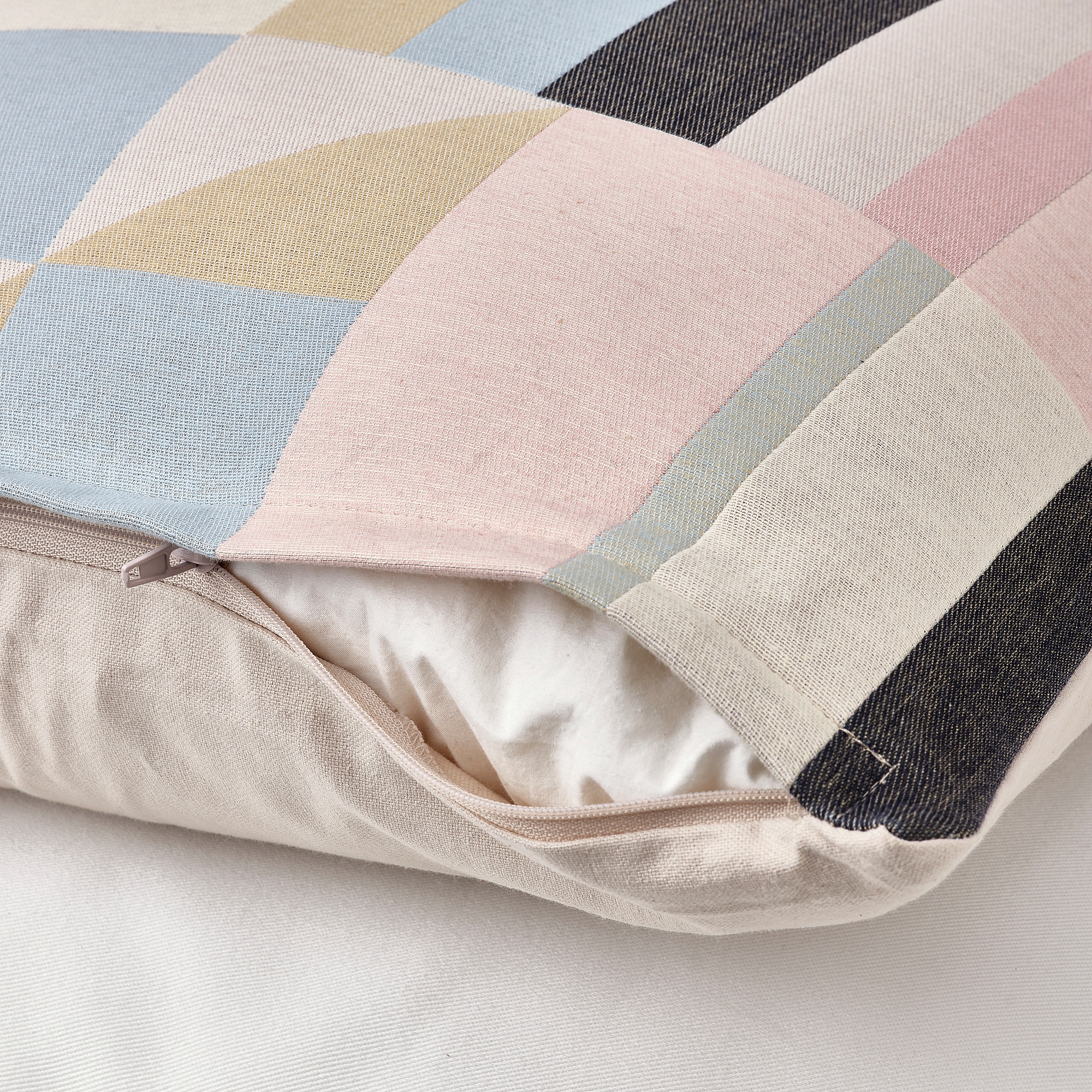 Эта прямоугольная наволочка изготовлена из плотной хлопковой жаккардовой ткани в сочетании мягких пастельных и контрастных темно-синих тонов. Она придает графический вид вашей кровати или дивану, а цвета легко сочетаются между собой.