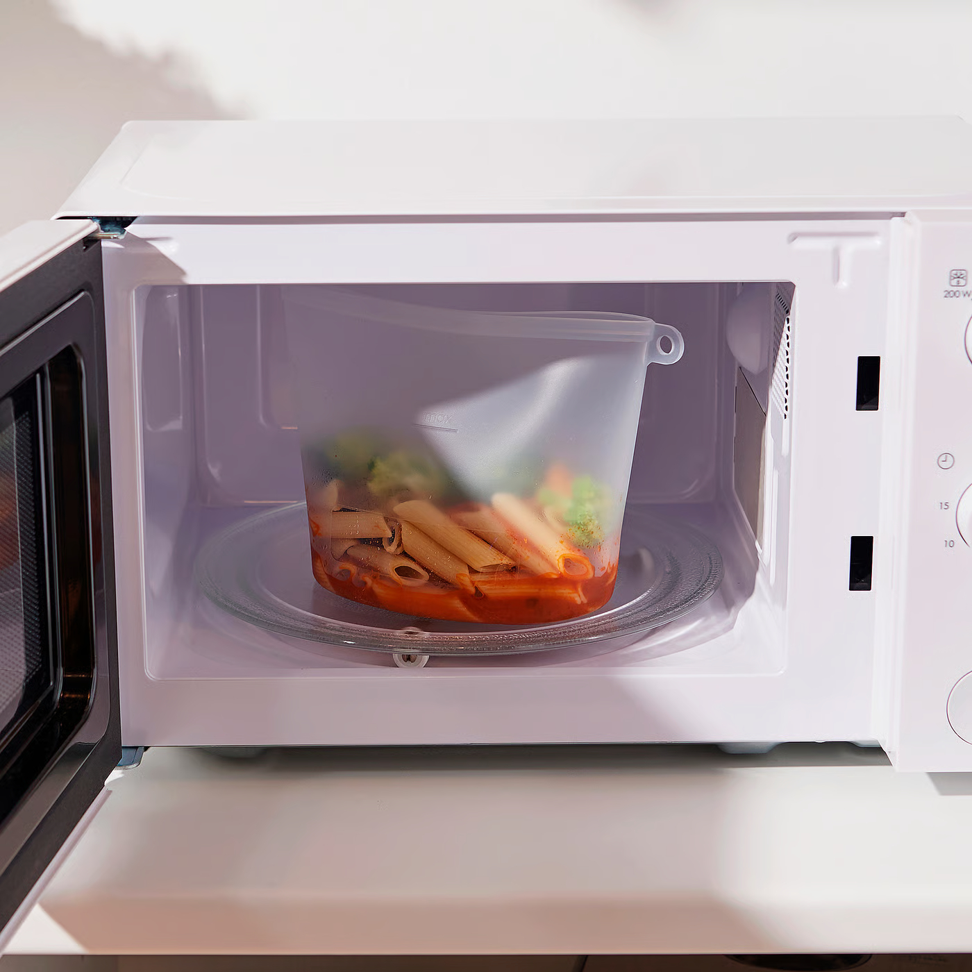 Вы можете готовить и разогревать еду прямо в пакете — достаточно снять застежку и поместить его в кастрюлю с кипящей водой или в духовку/микроволновую печь.