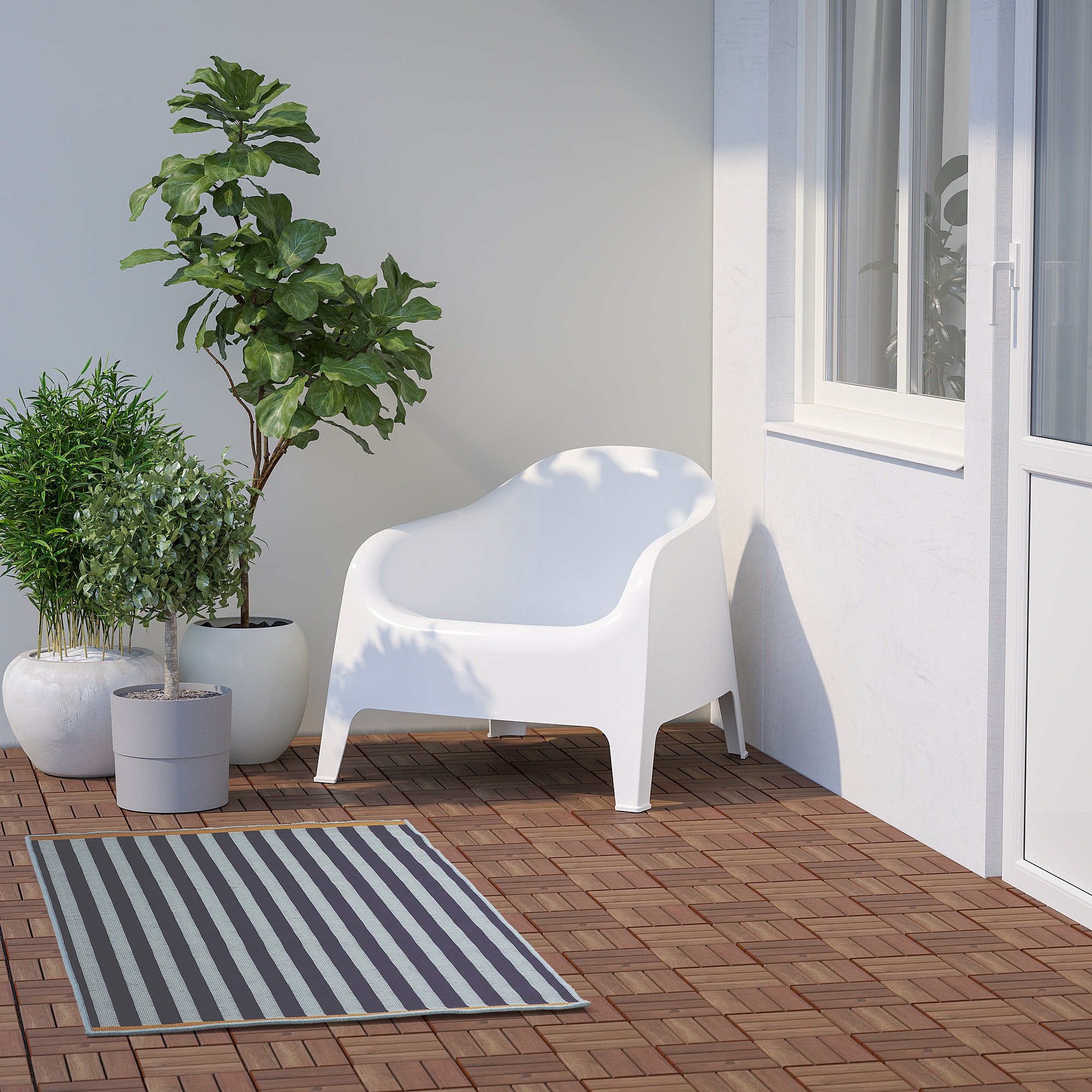 Этот простой в уходе и устойчивый к воздействию влаги ковер можно использовать не только в помещении, но и на улице.
