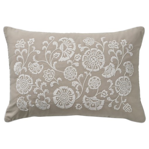 Подушка имеет два различных вида: одна сторона украшена вышивкой, а другая — полосками и застежкой на пуговицах. Вы можете менять стороны в зависимости от вашего настроения.