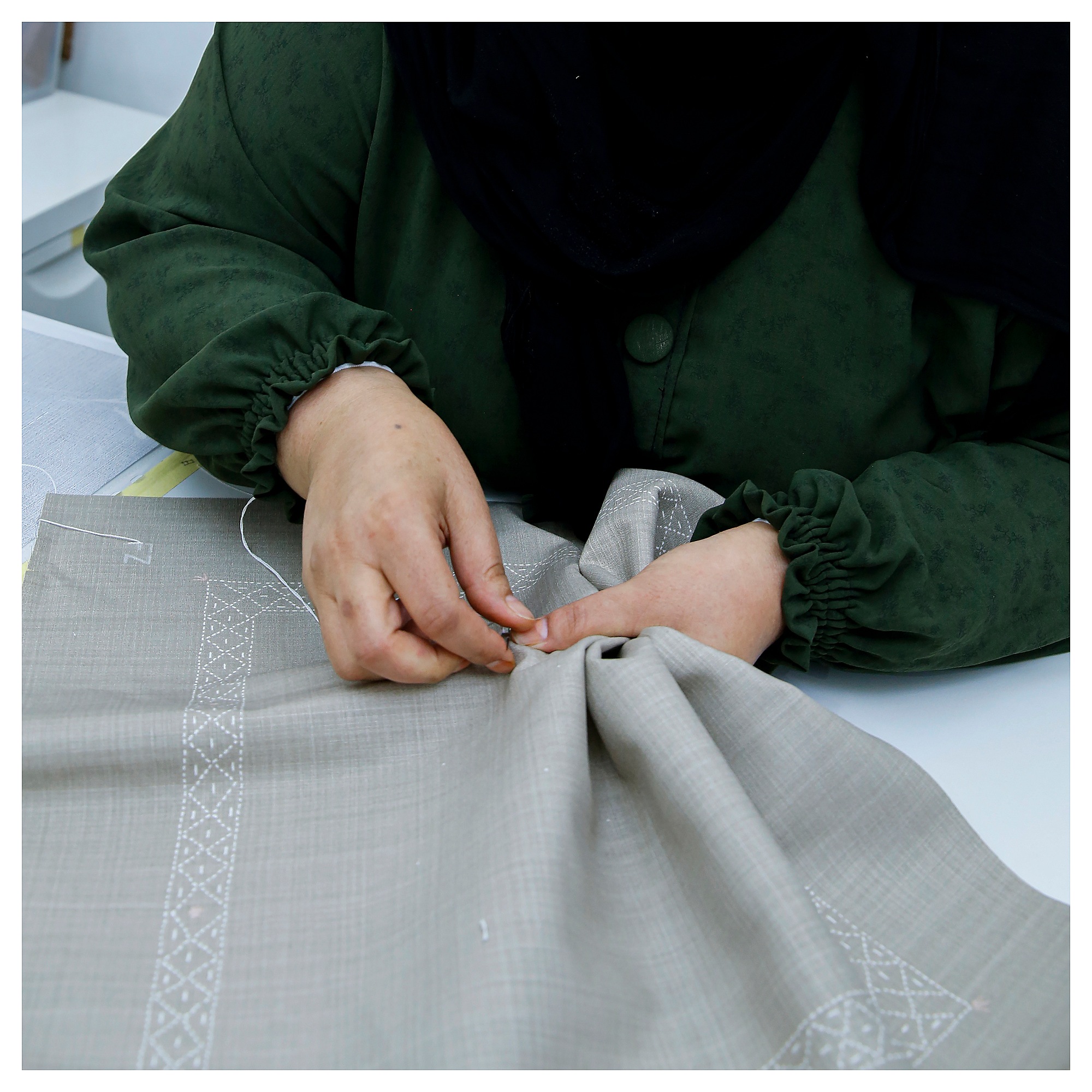 На каждой из этих уникальных наволочек написаны инициалы человека, вышившего ее в Фонде реки Иордан, социальном предприятии, которое обеспечивает ремесленникам долгосрочные средства к существованию.