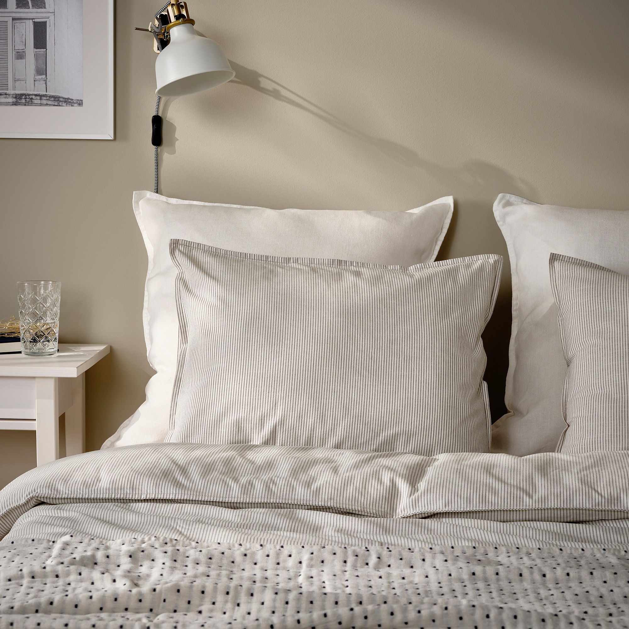 Чехол для подушки изготовлен из льна — прочного натурального материала с слегка неровной текстурой.