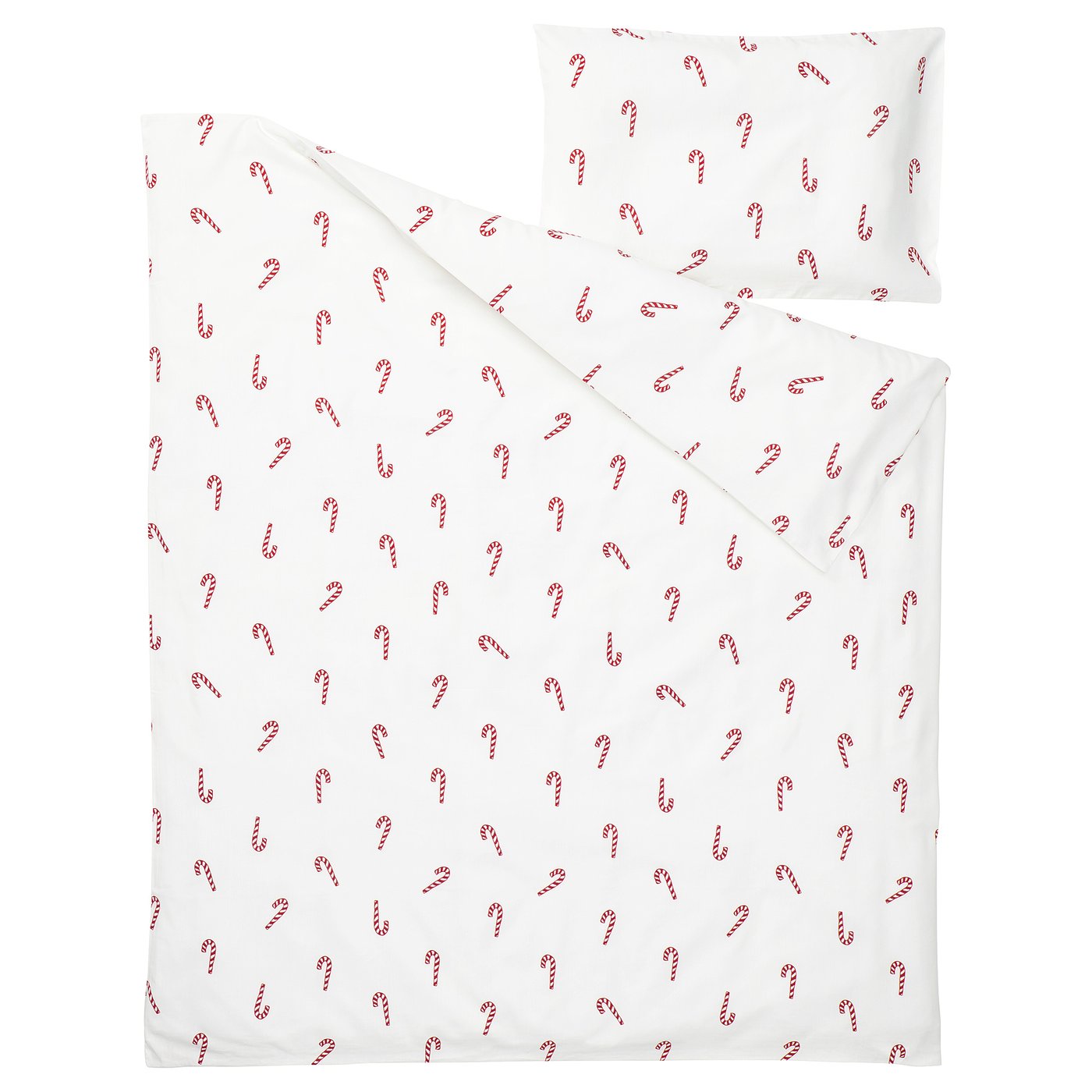 Веселый узор в виде сахарных тростей напоминает о Рождестве и делает постельное белье идеальным подарком для тех, у кого недавно появился ребенок.