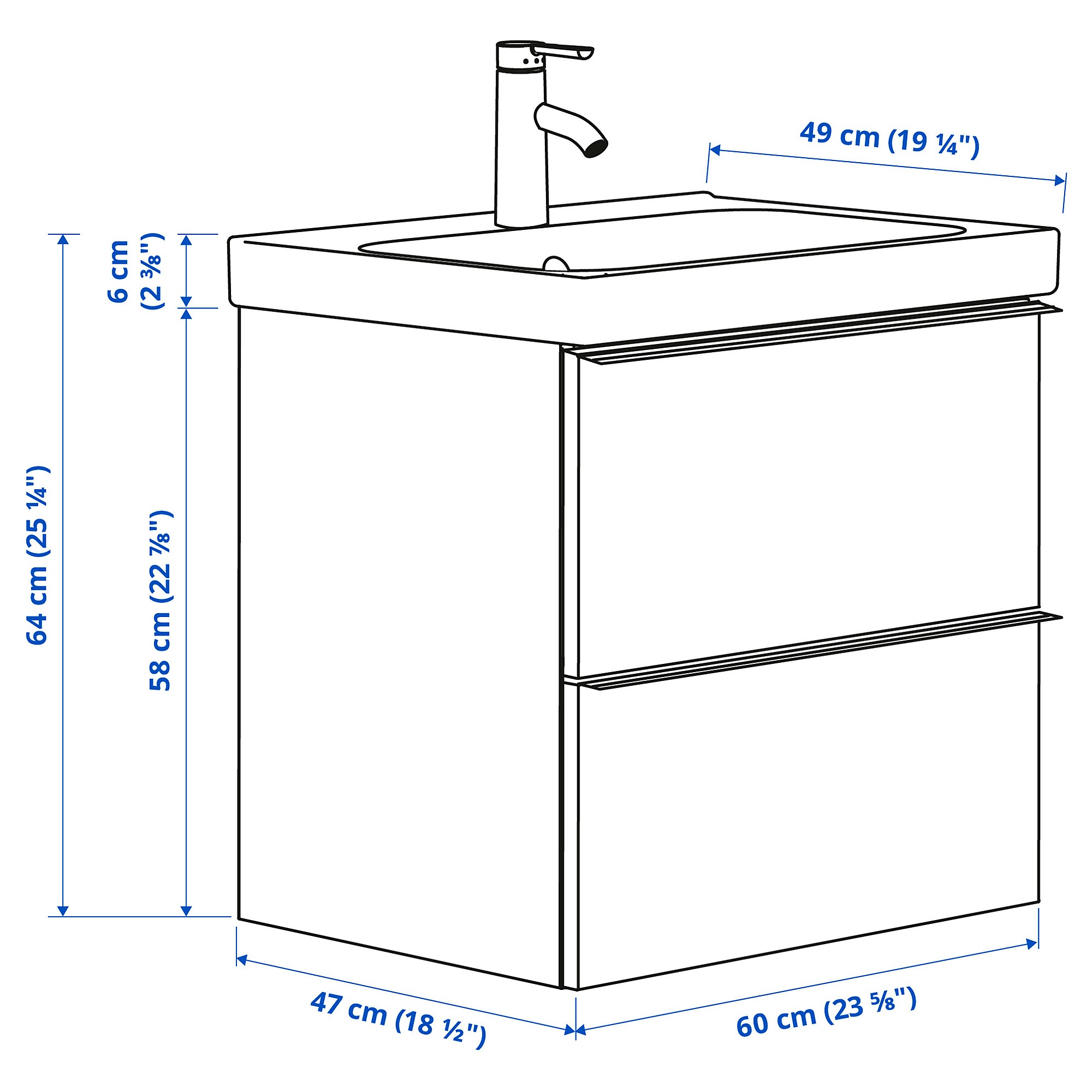Чистота, простота и эффективность. От вместительных выдвижных ящиков до водо- и энергосберегающего смесителя - эта мебель для ванной комнаты удовлетворит все ваши основные потребности. Подходит для различных цветов и стилей.