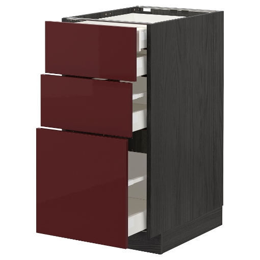 Система METOD предлагает неограниченные возможности для дизайна кухни вашей мечты. В сочетании с темными красновато-коричневыми глянцевыми фасадами KALLARP вы получите яркое и современное выражение.