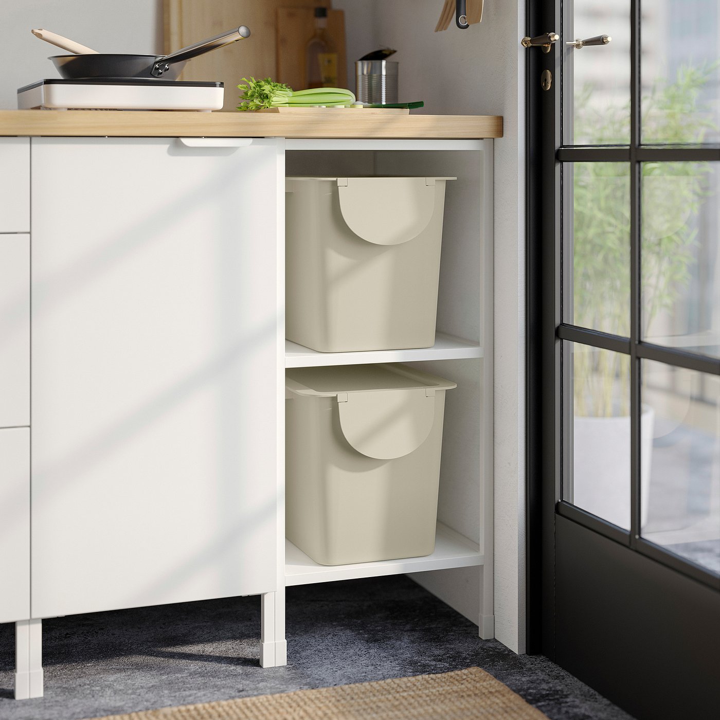 Корзина TRÖSKNING была разработана для сортировки сухих отходов, таких как пластик, металл, бумага и стекло, однако ее также можно использовать для хранения садовых инструментов или сумок для покупок.