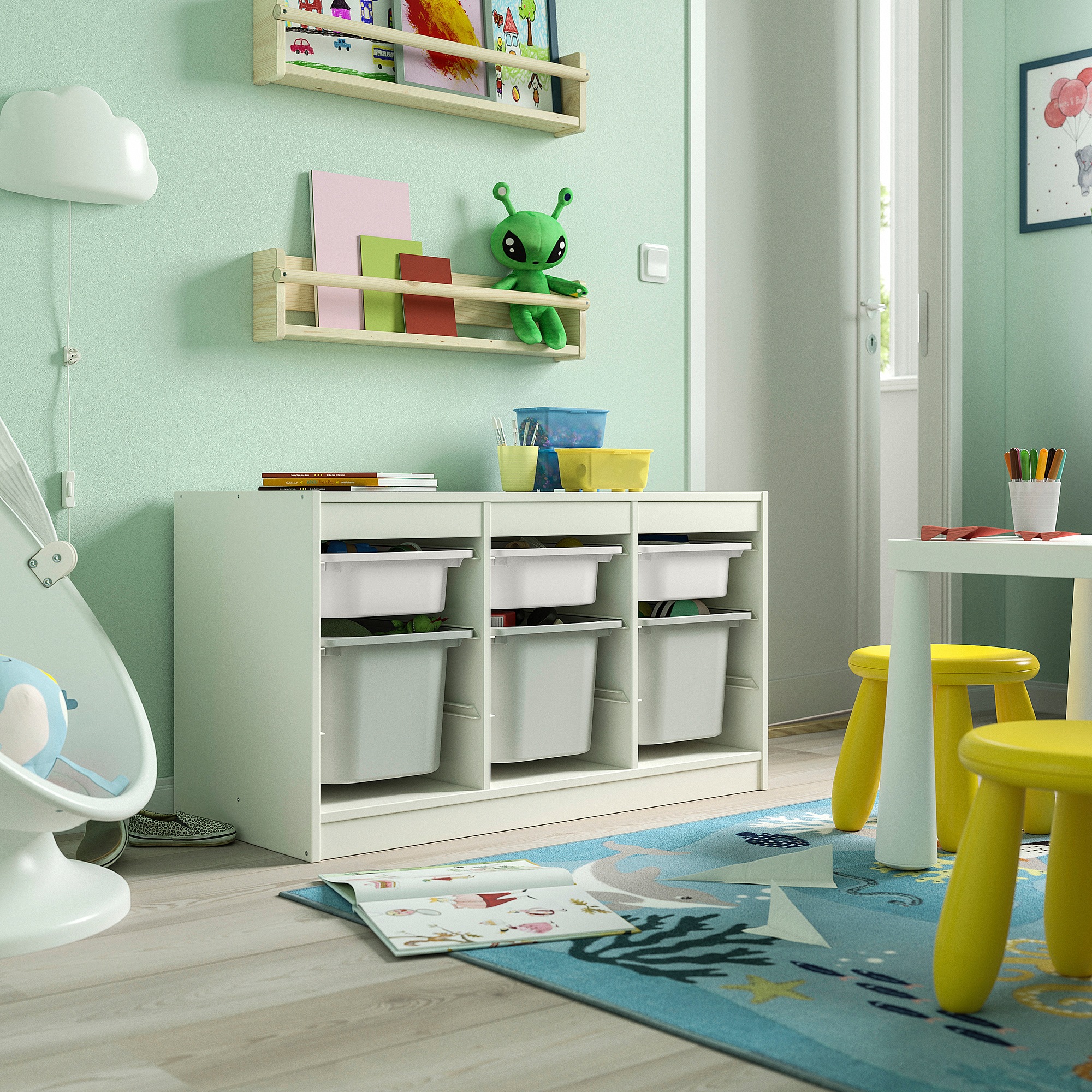 Детям необходимы подходящие решения для хранения своих вещей. В серии TROFAST вы найдете деревянные рамы, проволочные и пластиковые контейнеры, а также подносы (не менее 50% из них изготовлены из переработанных материалов). Их легко выдвигать и вставлять обратно.