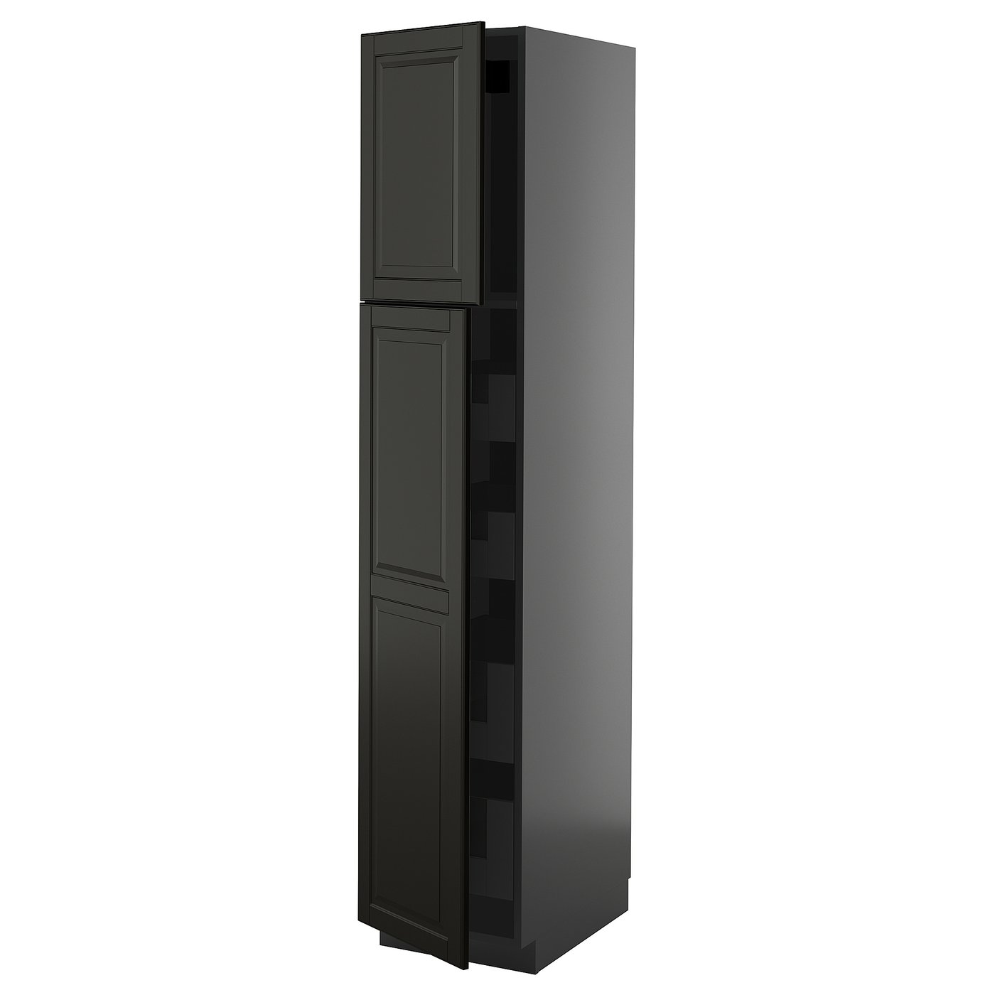 Система METOD предоставляет неограниченные возможности для проектирования кухни вашей мечты. В сочетании с черными фасадами BODBYN со скошенными краями она поражает теплой эстетикой и изысканностью.
