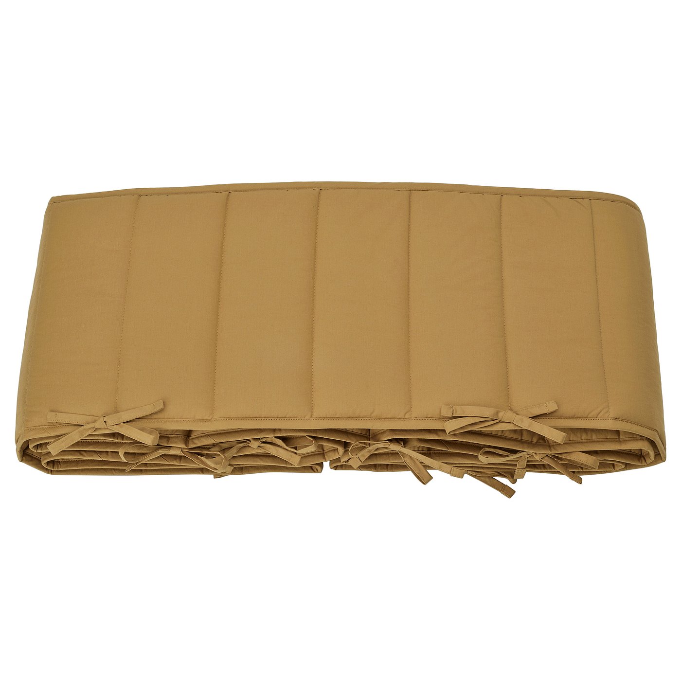 Защитный бортик для кроватки изготовлен из одного куска. Чтобы он не сдвигался, закрепите его с помощью ленточек или положите матрас поверх бортика.