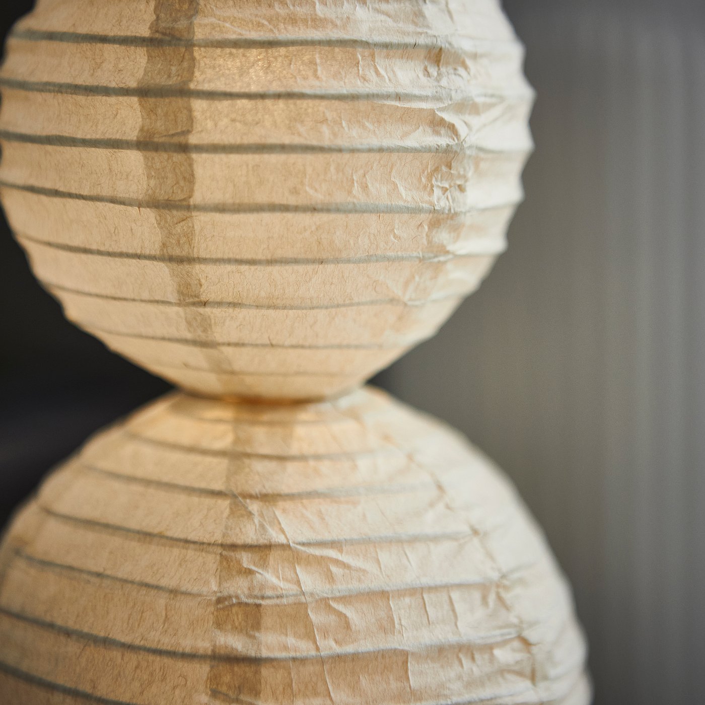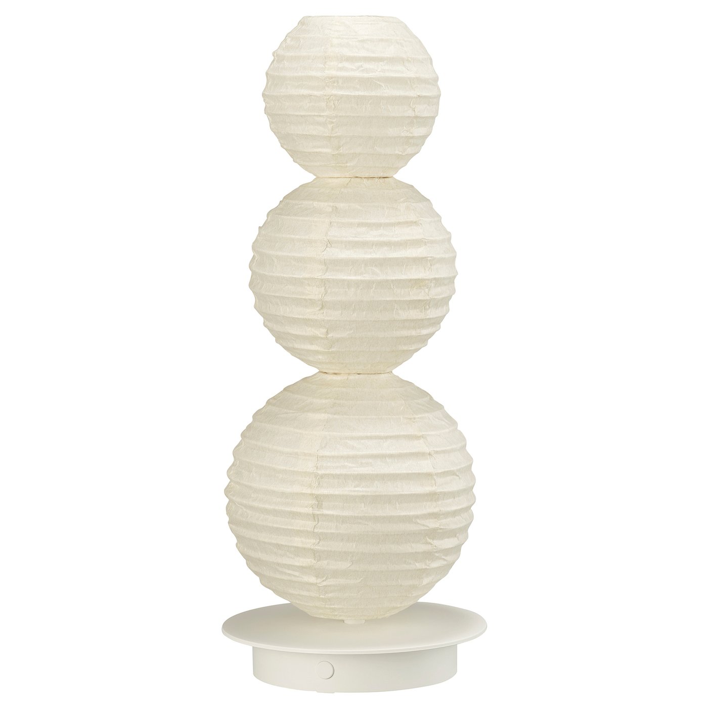 Натуральный бумажный материал, мягкие, шарообразные формы и нежный свет создают в помещении спокойную и уютную атмосферу. Лампа питается от батареек, благодаря чему ее можно разместить в любом месте – временно или на постоянной основе.