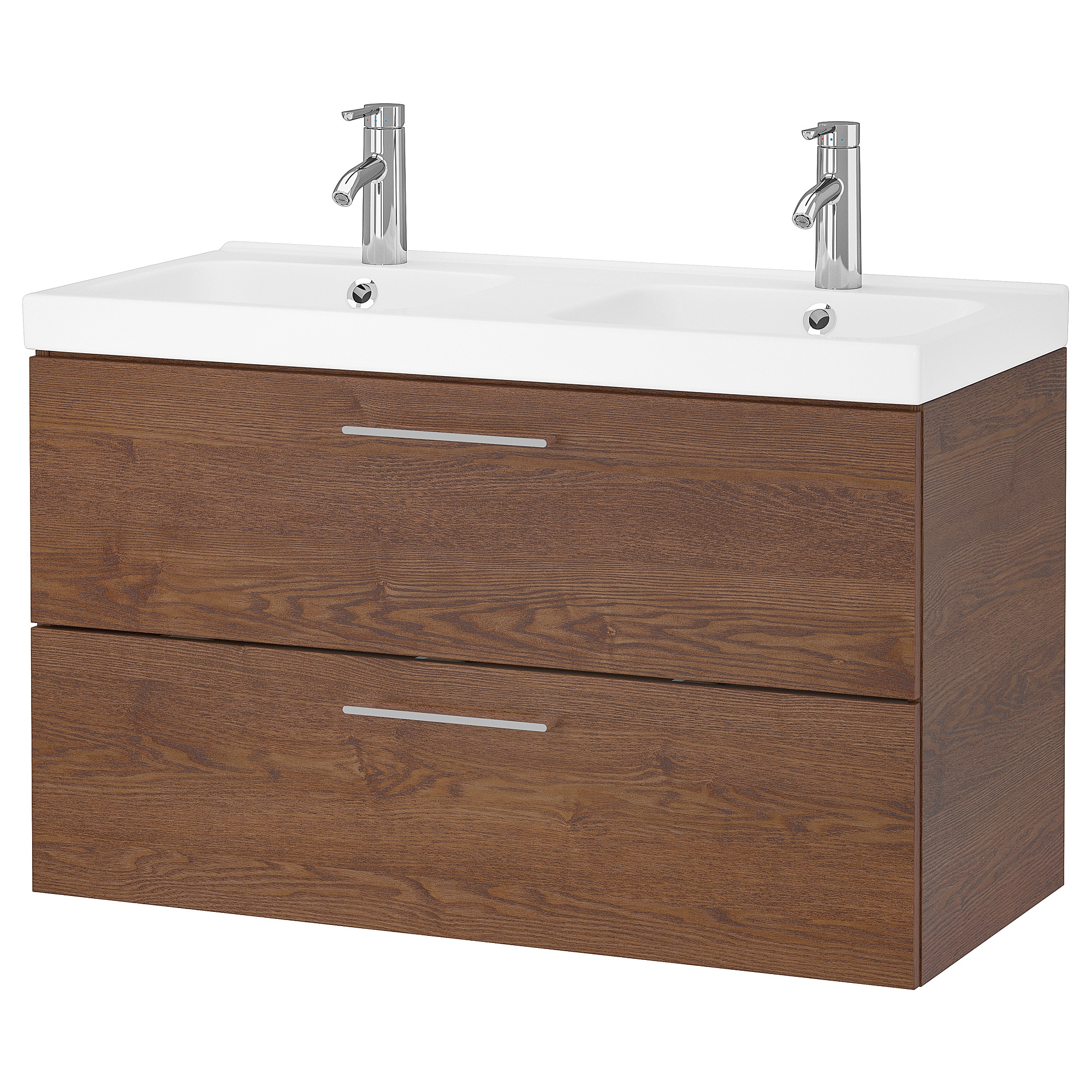 Тумба под умывальник с 2 выдвижными ящиками, Шпон с имитацией коричневой морилки, 100x47x58 см