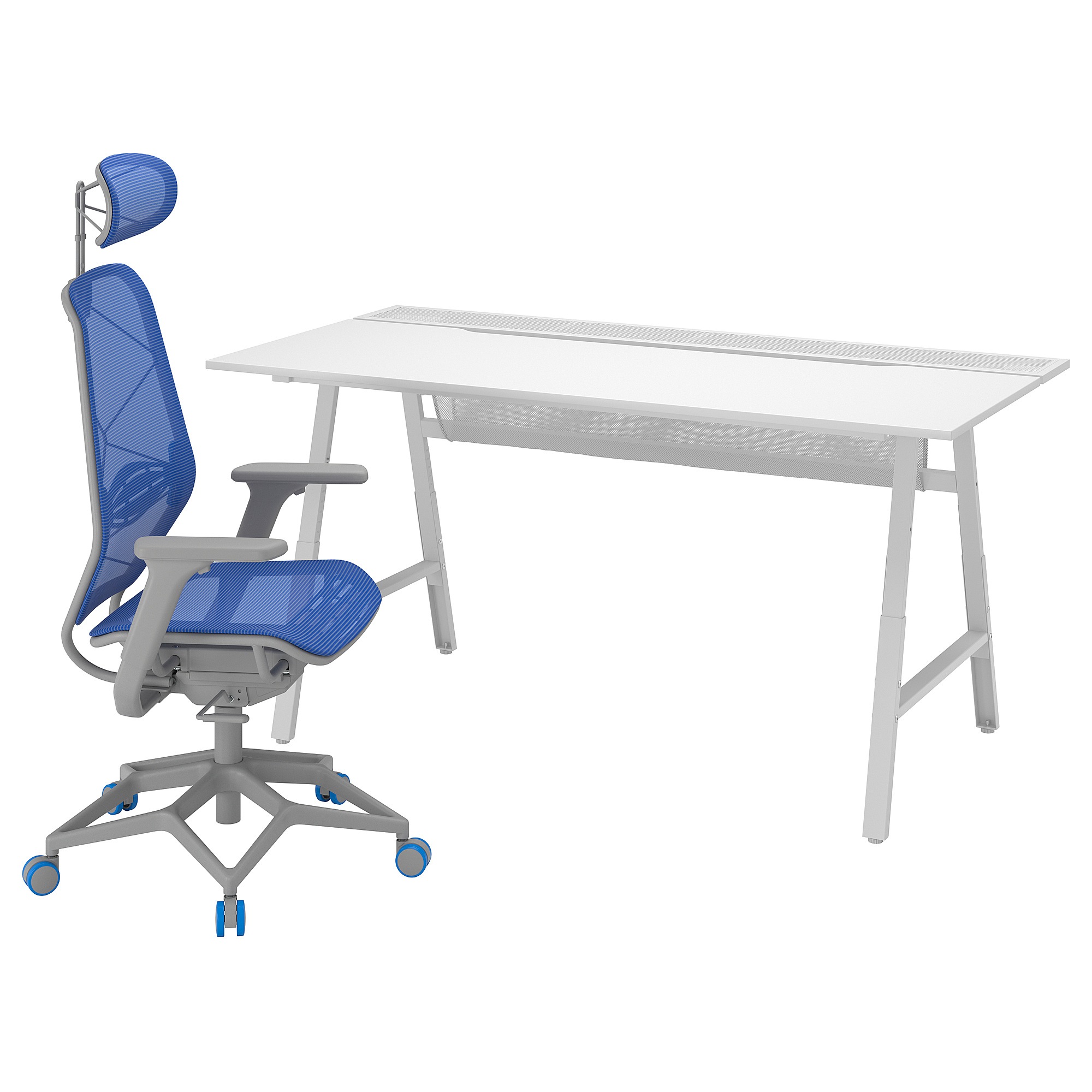 Упаковки: 2Общий вес упаковки: 55.36 кг ИКЕА STYRSPELИгровое кресло, офис, синий, светло-серыйАртикульный номер: 10506693Ширина: 67 смВысота: 28 смДлина: 96 смВес: 24.9 кгИКЕА UTESPELAREГеймерский стол, светло-серый, 160x80 смАртикульный номер: 40507629Ширина: 79 смВысота: 9 смДлина: 165 смВес: 30.5 кг