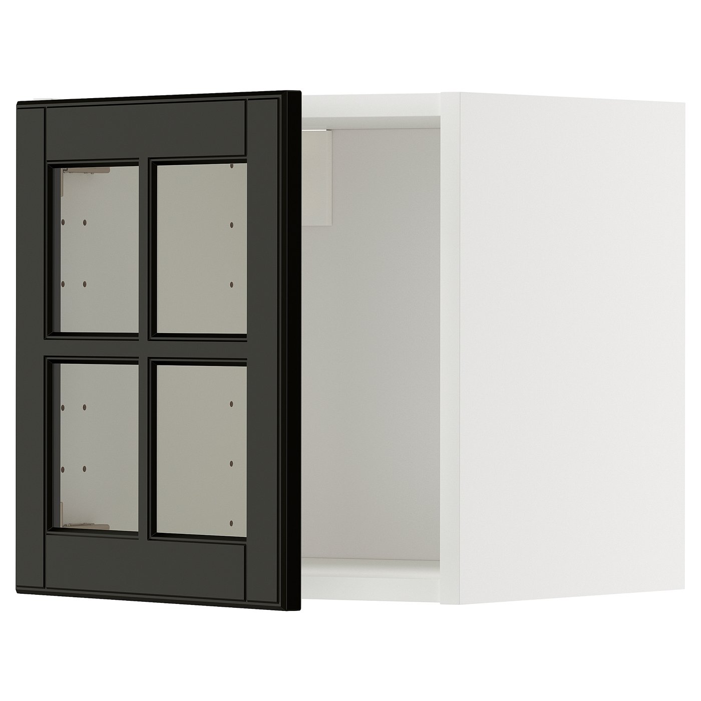 Система METOD предоставляет неограниченные возможности для проектирования кухни вашей мечты. В сочетании с черными стеклянными дверцами BODBYN с фацетированными краями создается стильный эффект и теплая атмосфера.