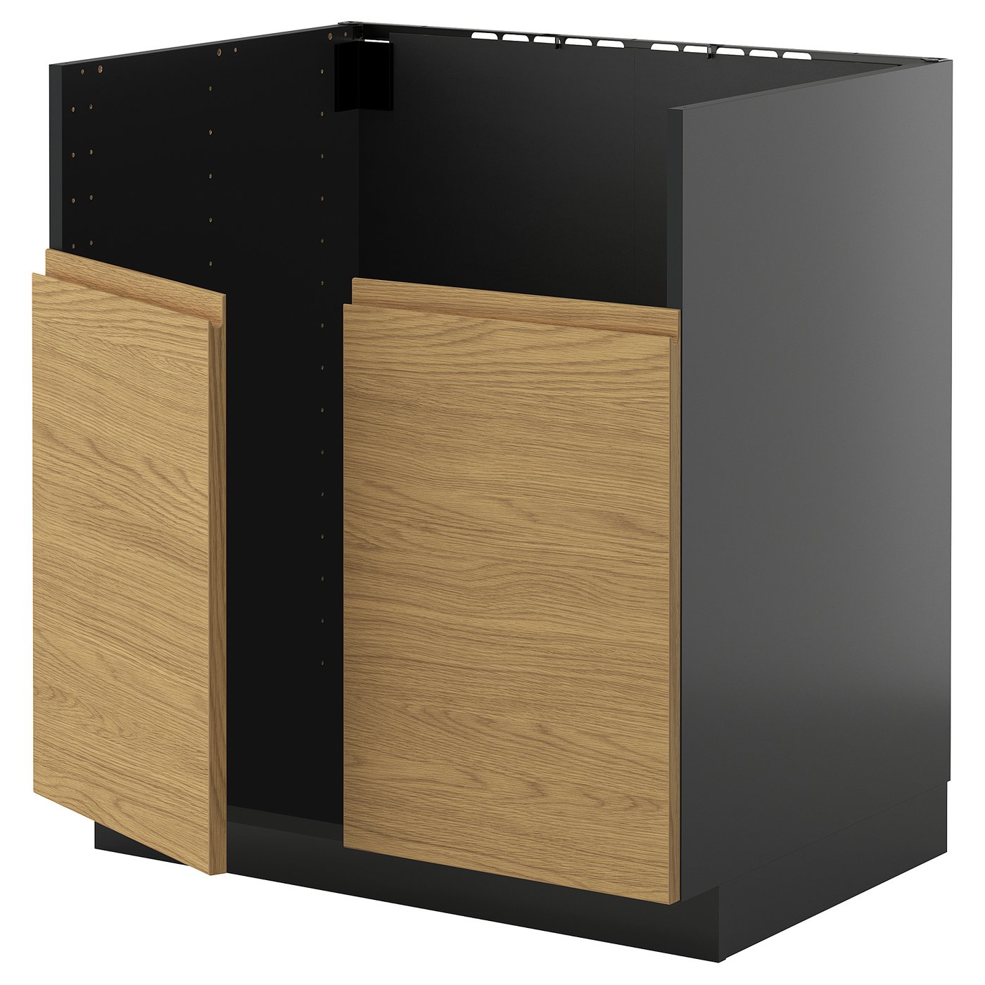 Система METOD предоставляет неограниченные возможности для проектирования кухни вашей мечты. В сочетании с фасадами VOXTORP с отделкой под дуб и интегрированными ручками вы получите минималистичный эффект с теплым выражением.