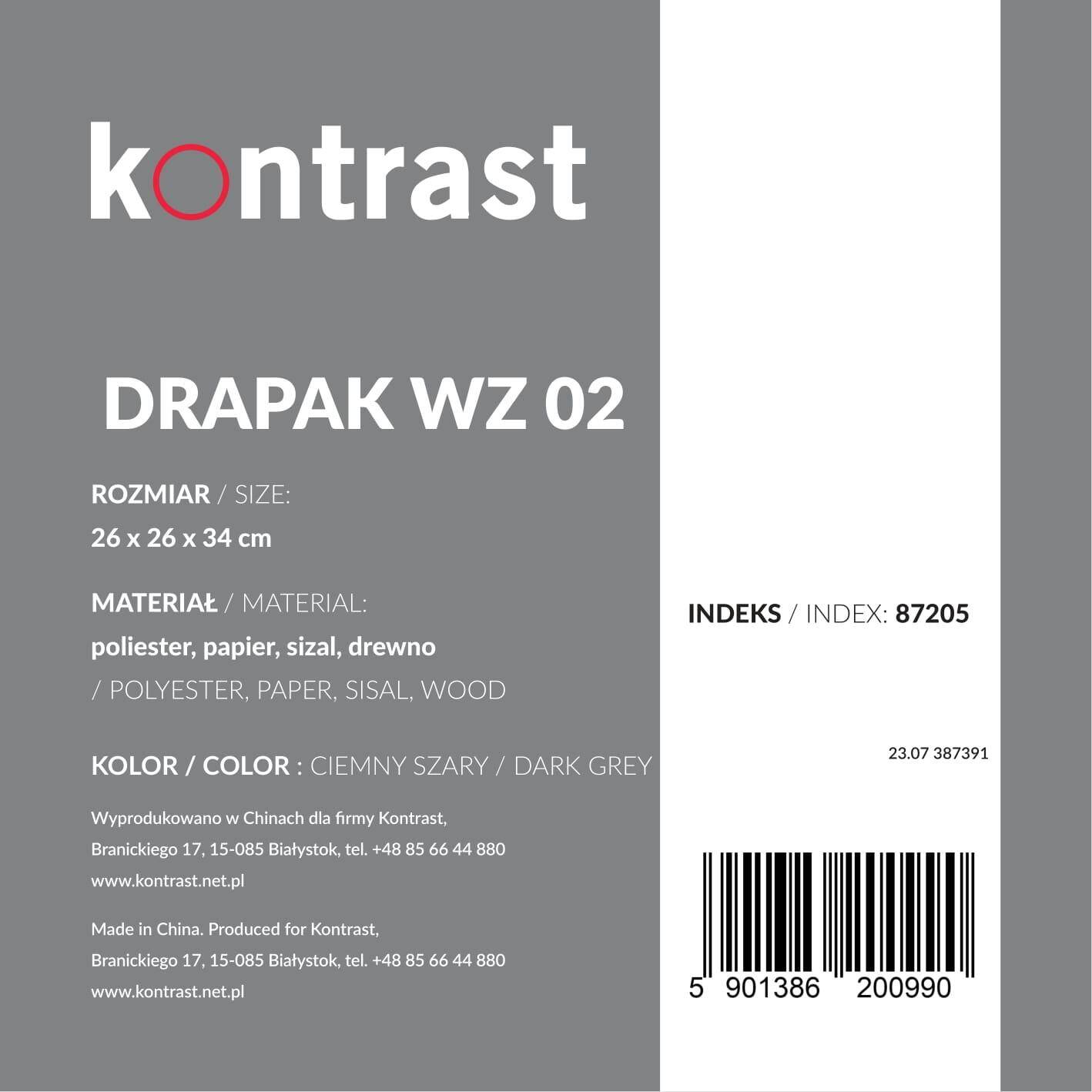Обеспечьте своему коту развлечение, отдых и здоровый уход за когтями благодаря угловому когтеточки серии wz02 от бренда Kontrast. Эта компактная когтеточка сочетает в себе столбик для царапания, игрушку на резинке и удобное лежание в одном практичном изделии.