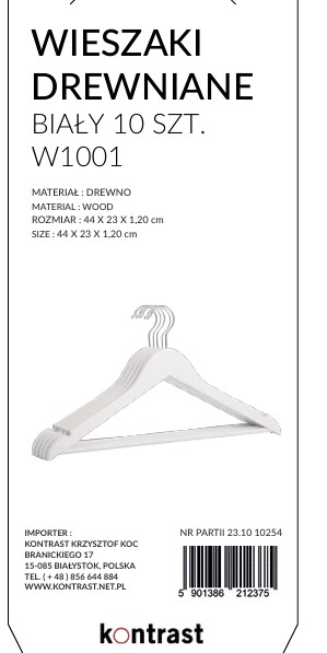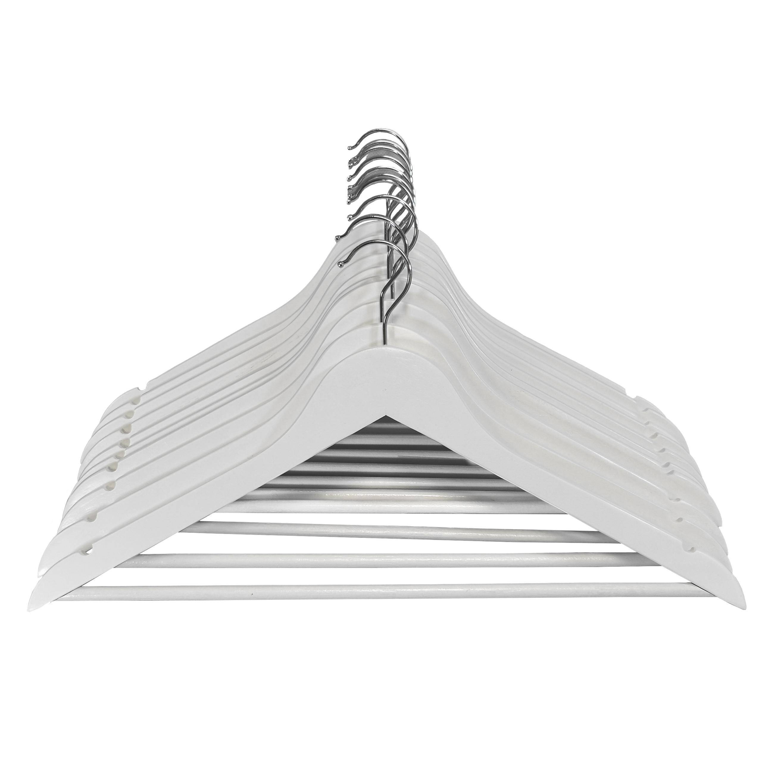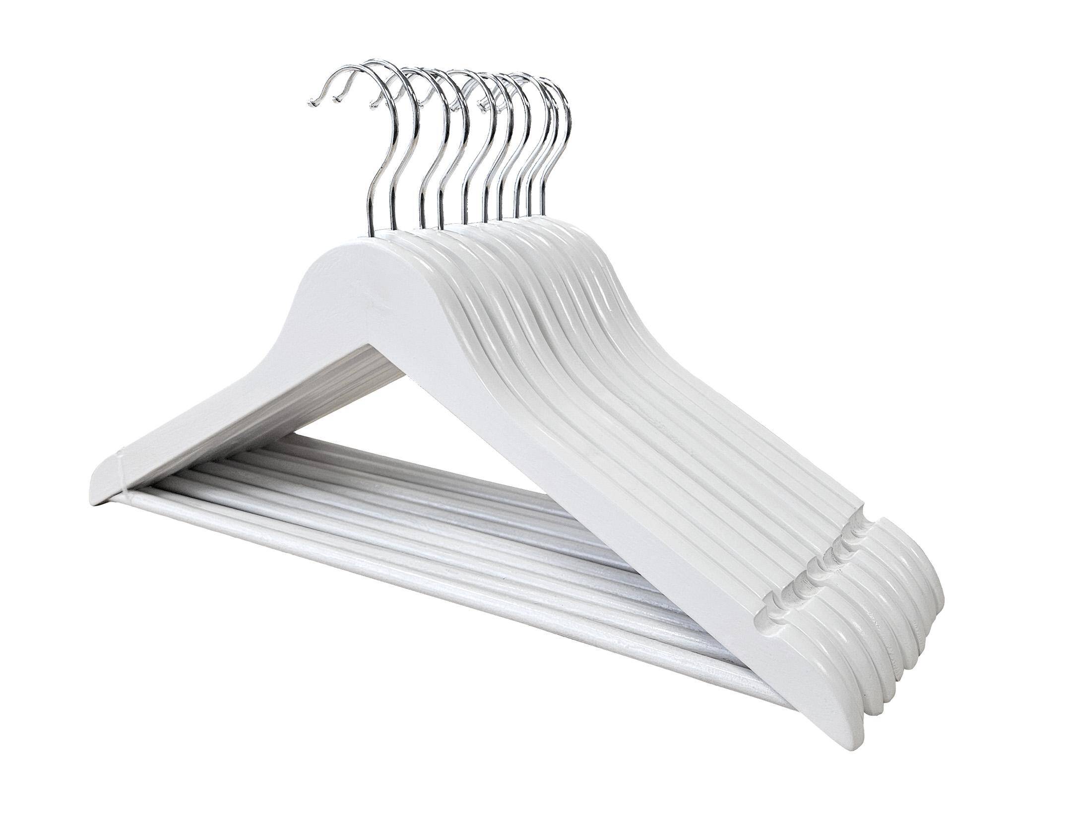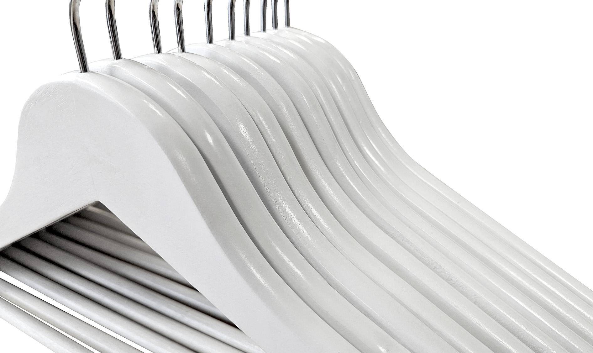 Набор из 10 деревянных вешалок W1001 — это элегантное и функциональное решение для любого гардероба. Благодаря классической форме и стильной белой отделке вешалки идеально вписываются в интерьер как современных, так и классических помещений, обеспечивая порядок и эстетичный вид при хранении одежды.