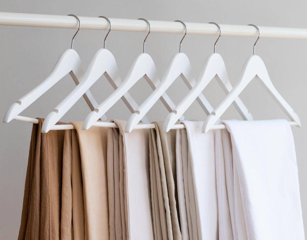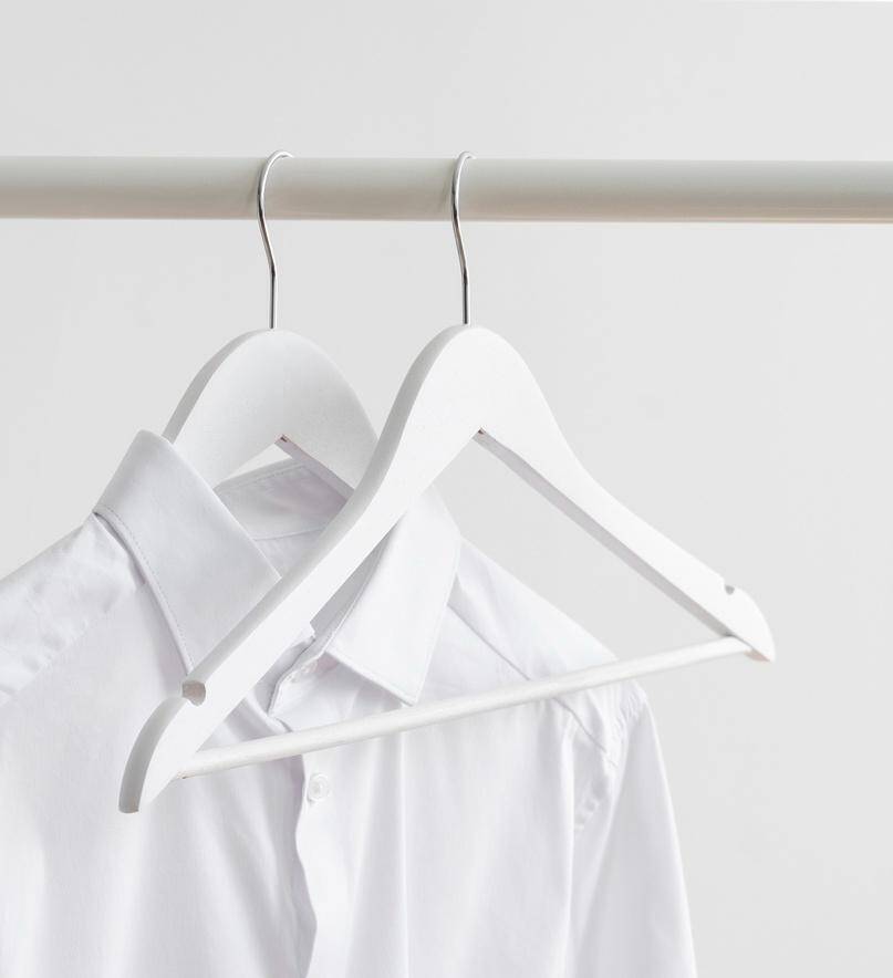 Белые деревянные вешалки — это идеальное сочетание функциональности и элегантности. Они прекрасно смотрятся в открытых гардеробных и шкафах, придавая интерьеру свежесть и упорядоченный вид. Они легкие, но в то же время прочные, благодаря чему с легкостью выдержат даже более тяжелую одежду.