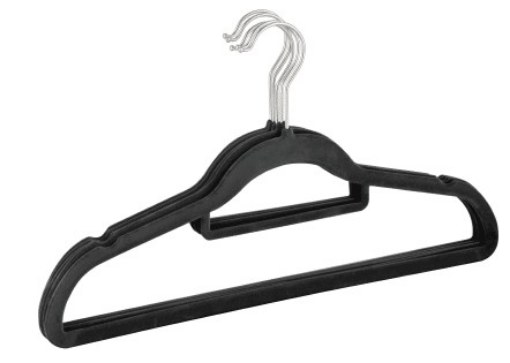 Вешалки для одежды, плоские, что позволяет сэкономить место в шкафу; поверхность с противоскользящим покрытием, обтянутая велюром.