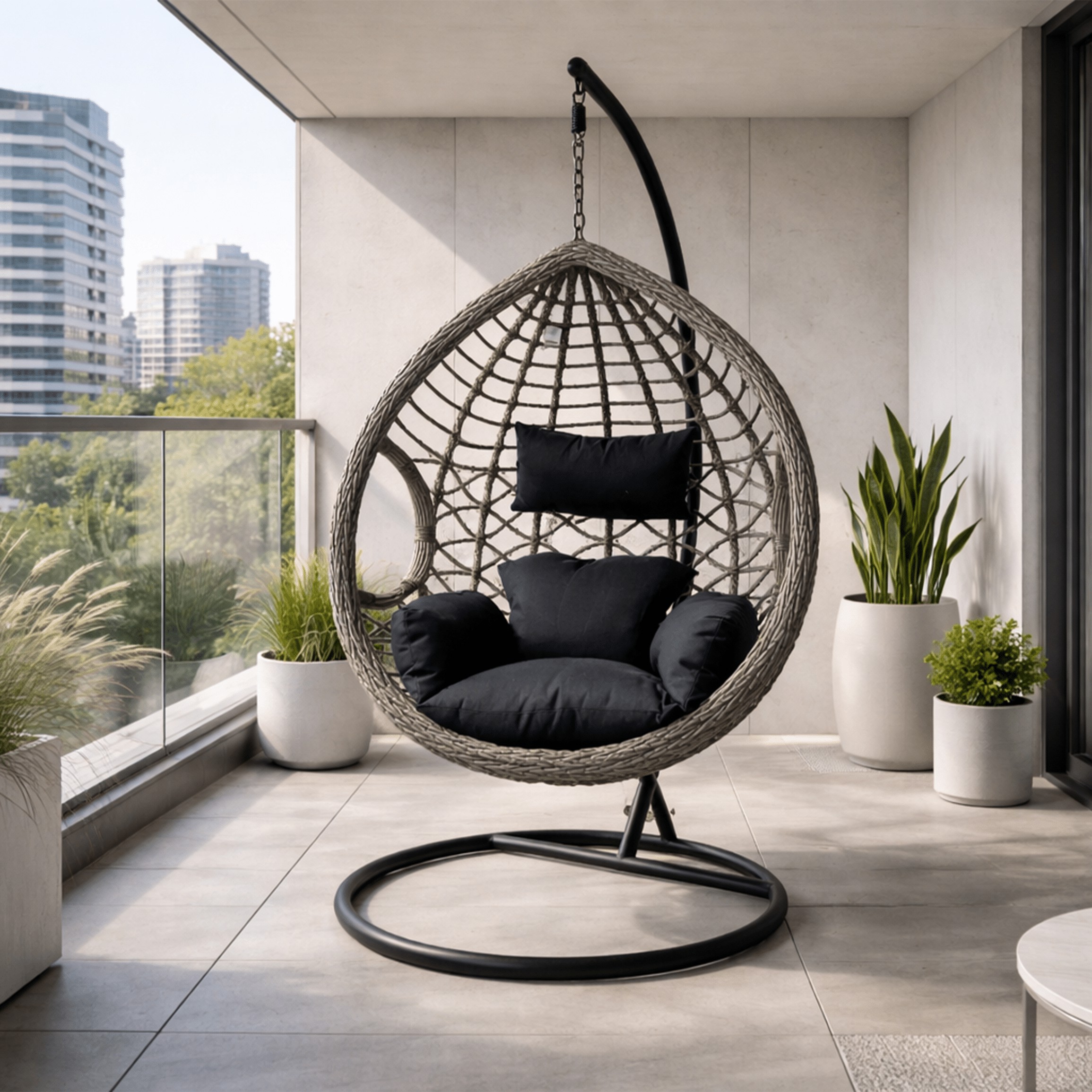Современная форма кокона из элегантной имитации ротанга натурального или серого цвета придаст шарм любому интерьеру и открытому пространству.