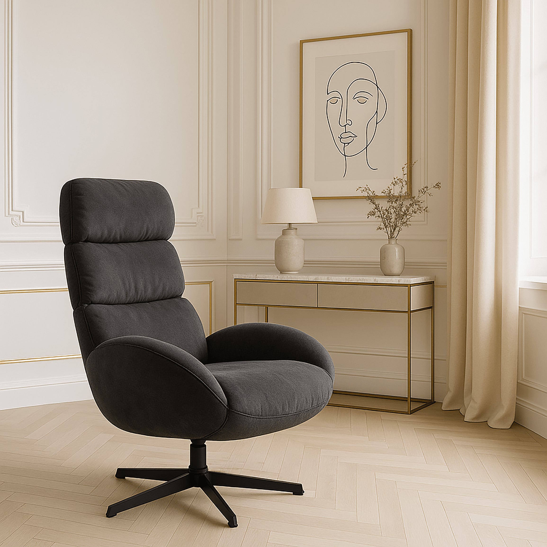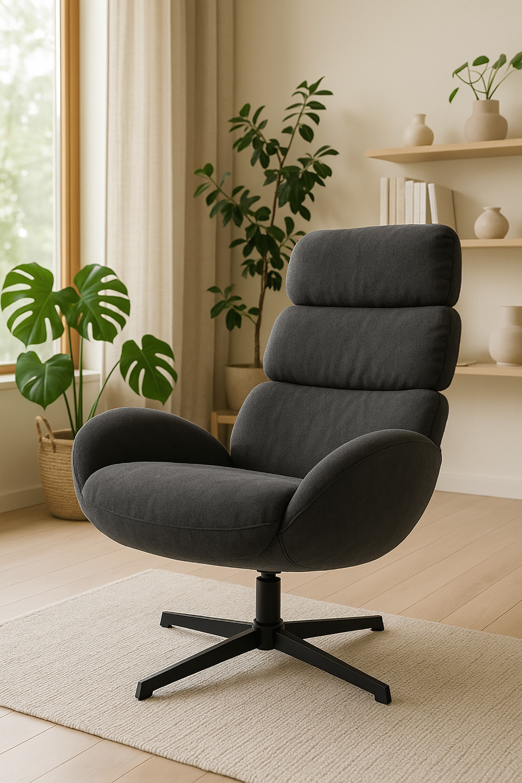 Кресло AXEL FO102 в темно-сером оттенке — это сочетание современного дизайна, комфорта и высокого качества изготовления. Обитое мягкой тканью вельвет, приятной на ощупь и элегантной на вид, кресло идеально впишется в гостиную, кабинет или домашний офис. Устойчивая черная стальная крестообразная основа с функцией поворота на 360° обеспечивает полную свободу движения.