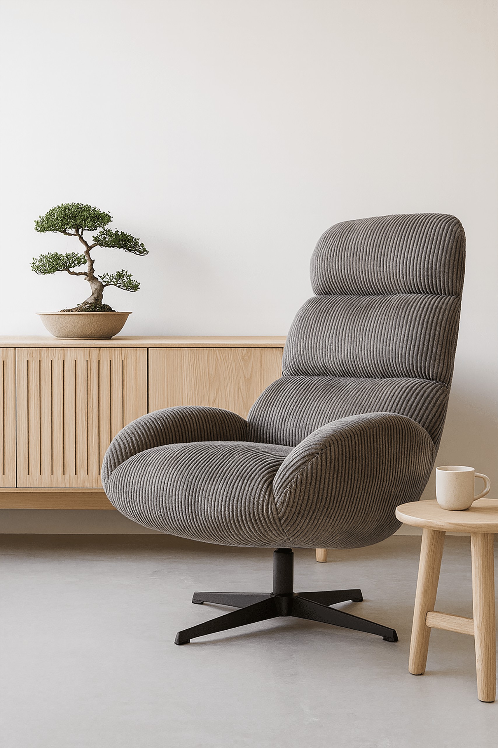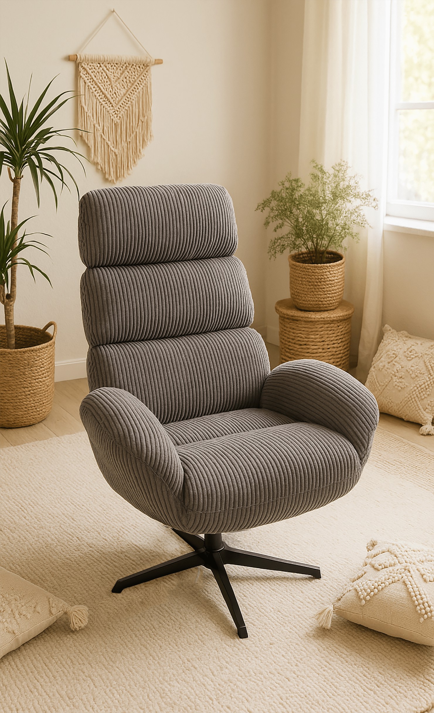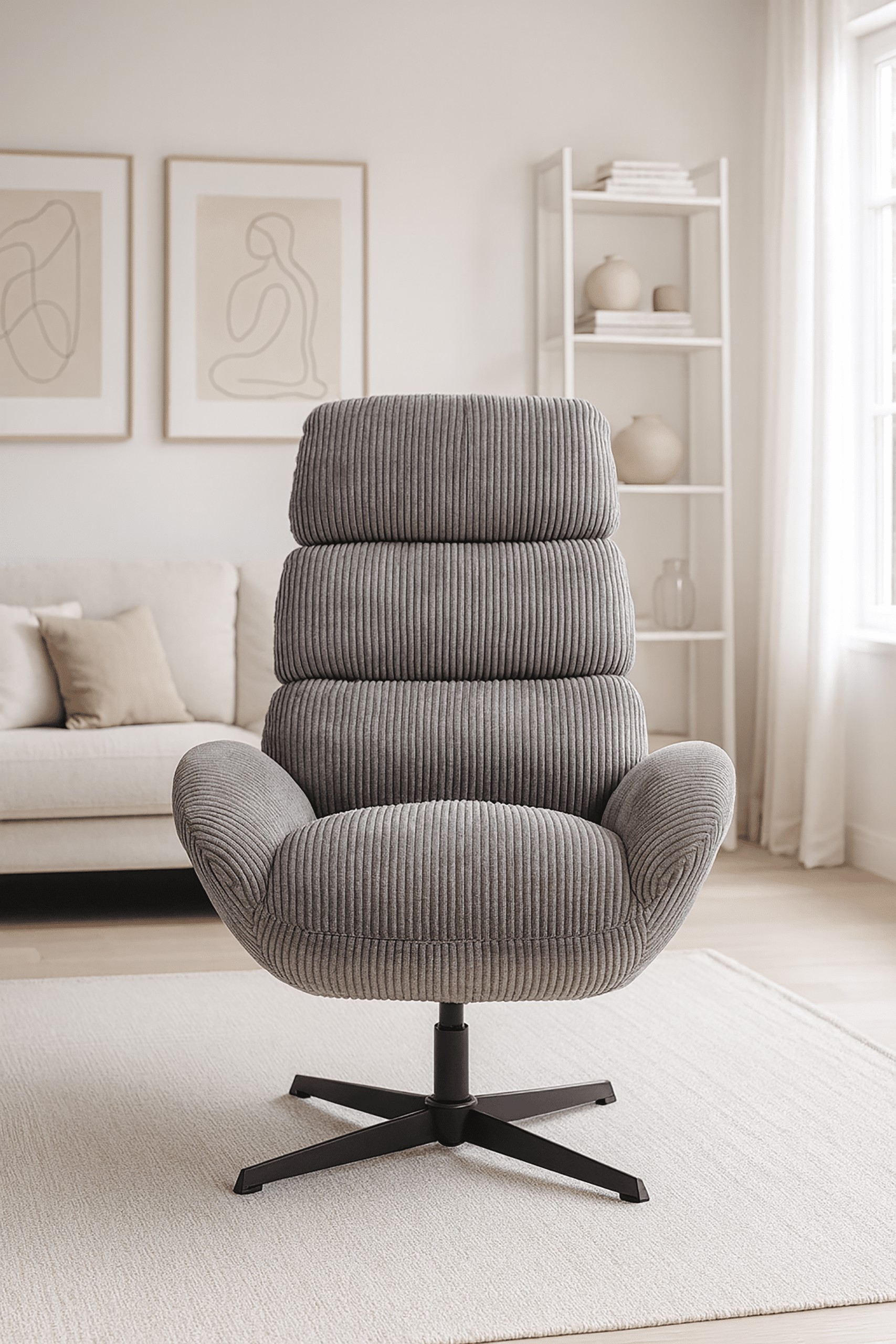 Кресло AXEL из серого вельвета — отличный выбор для тех, кто ищет удобное, элегантное и функциональное вращающееся кресло, которое станет центральным элементом любого интерьера.