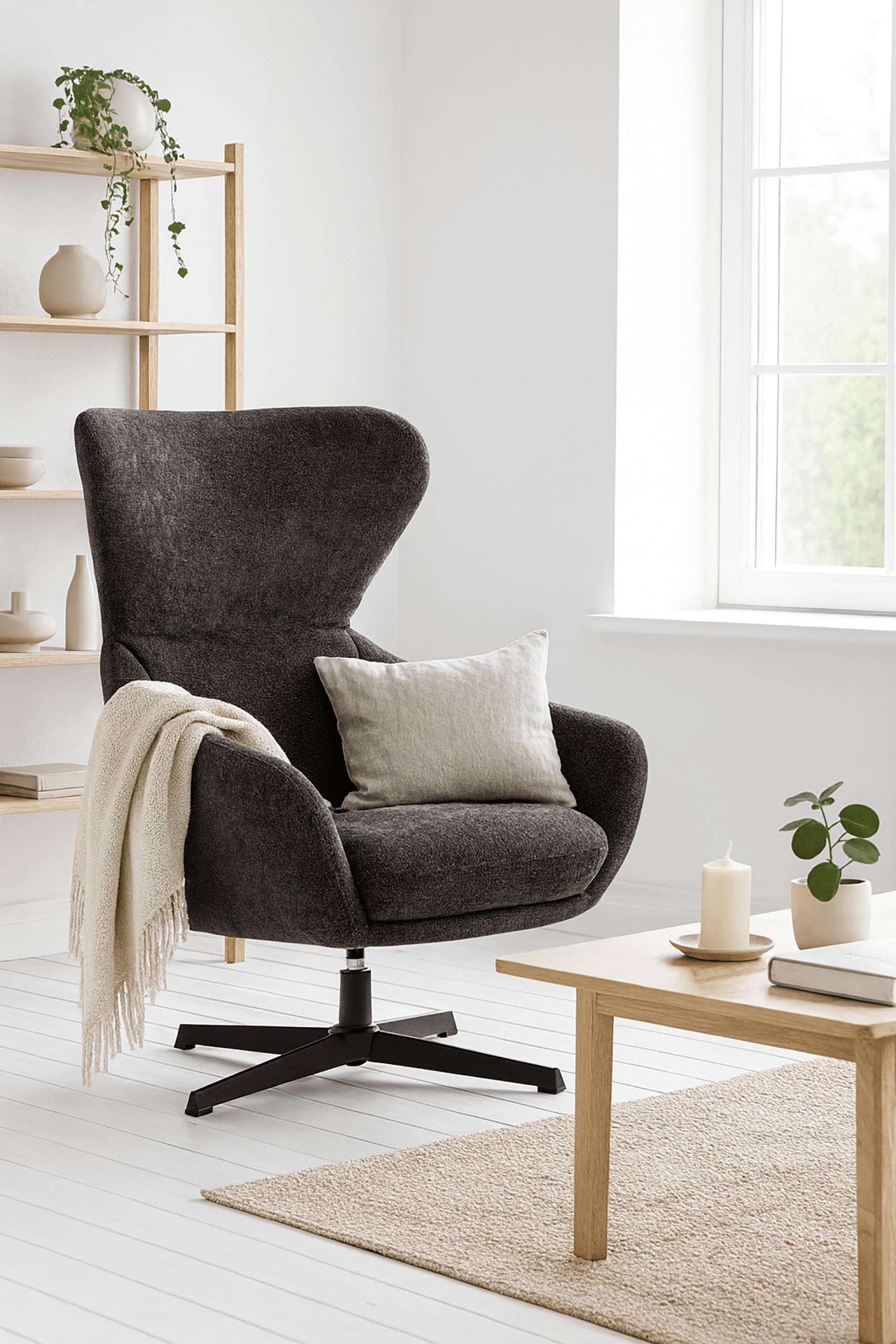 Кресло FELIX темно-серого цвета — идеальный выбор для тех, кто хочет привнести в свой интерьер элегантность, роскошный вид и максимальный комфорт для отдыха.