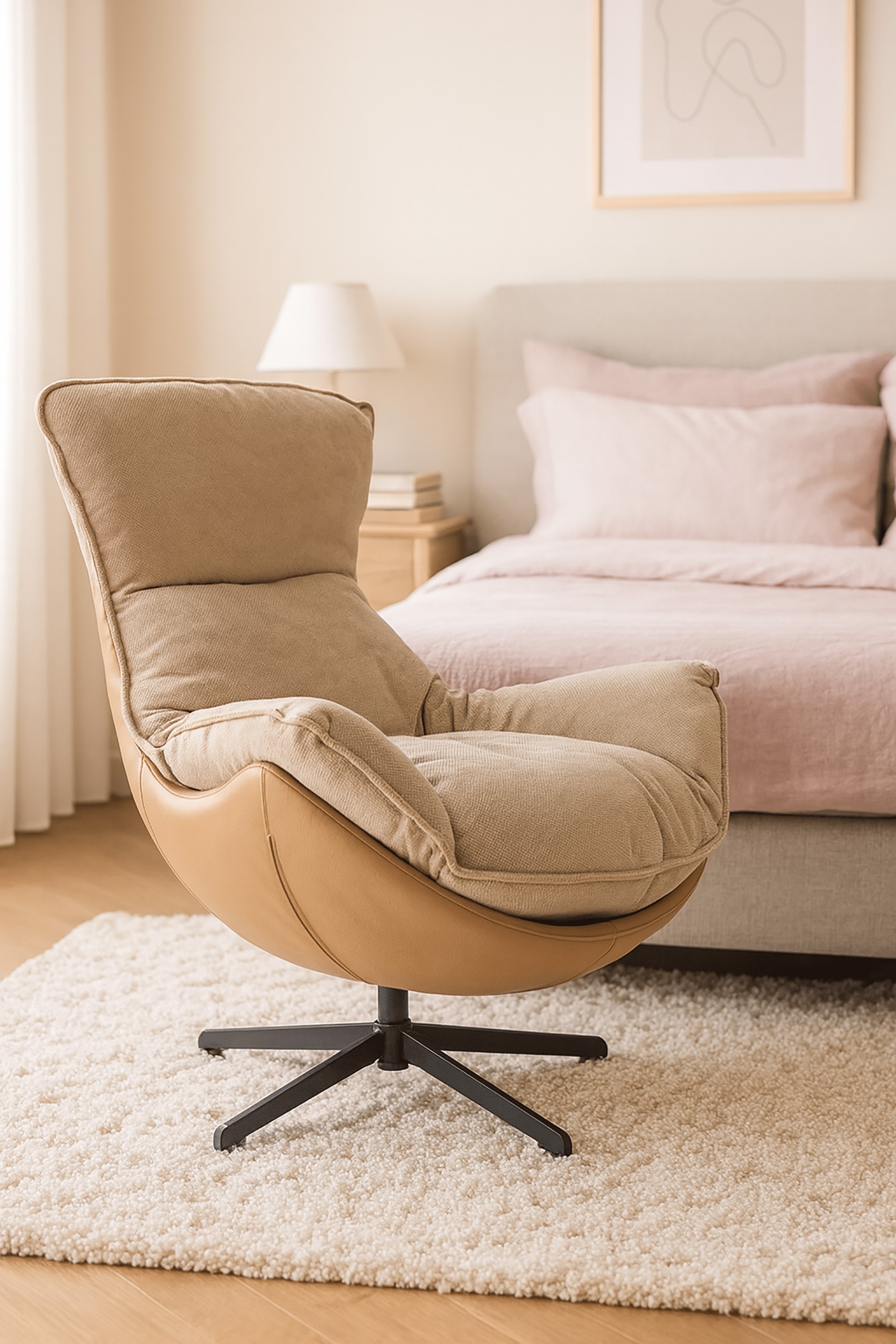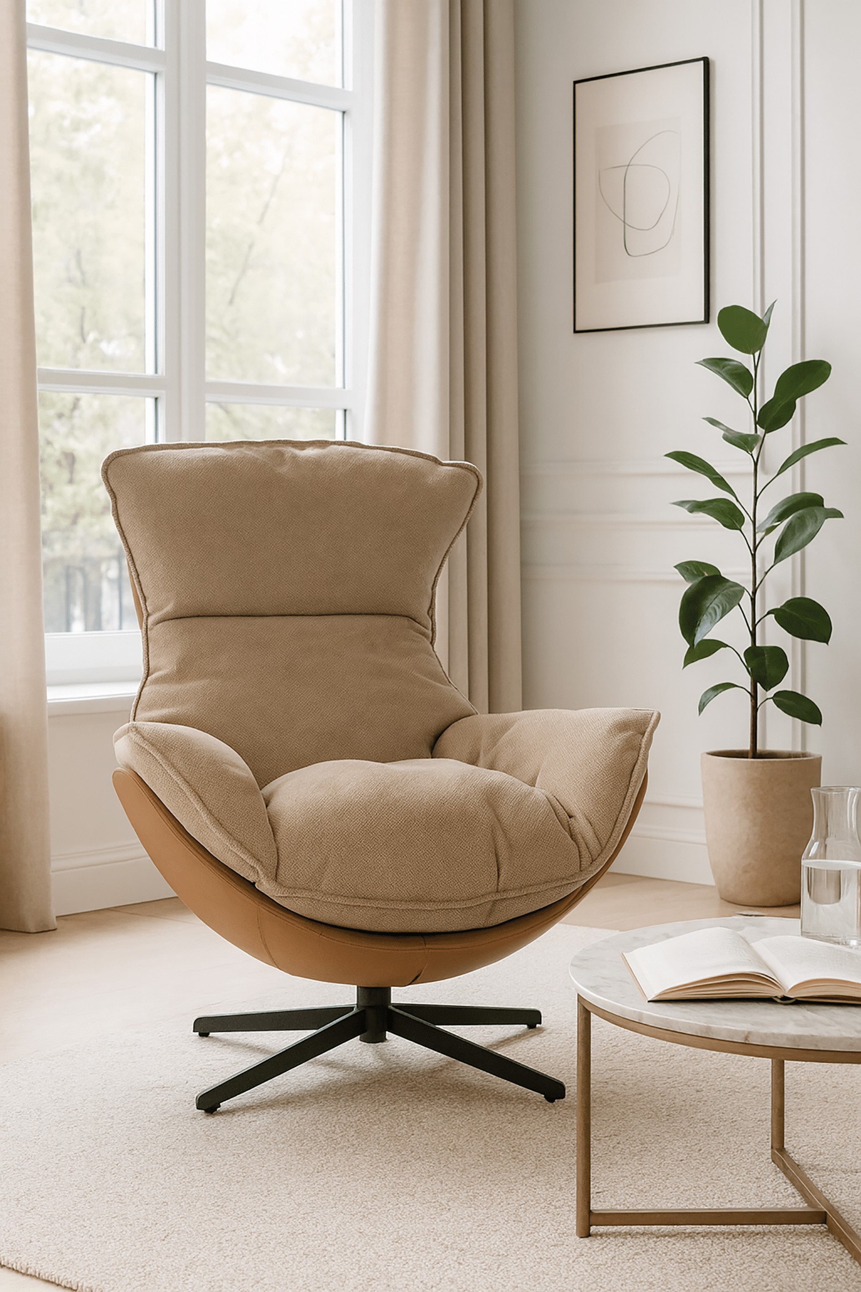 Кресло JASPER FO105 в элегантном бежевом оттенке — идеальный выбор для гостиной, кабинета или домашнего офиса. Обитое мягкой структурной тканью 3D, напоминающей бархат, оно обеспечивает исключительный комфорт, а вращающаяся на 360° крестообразная основа гарантирует полную свободу движений.