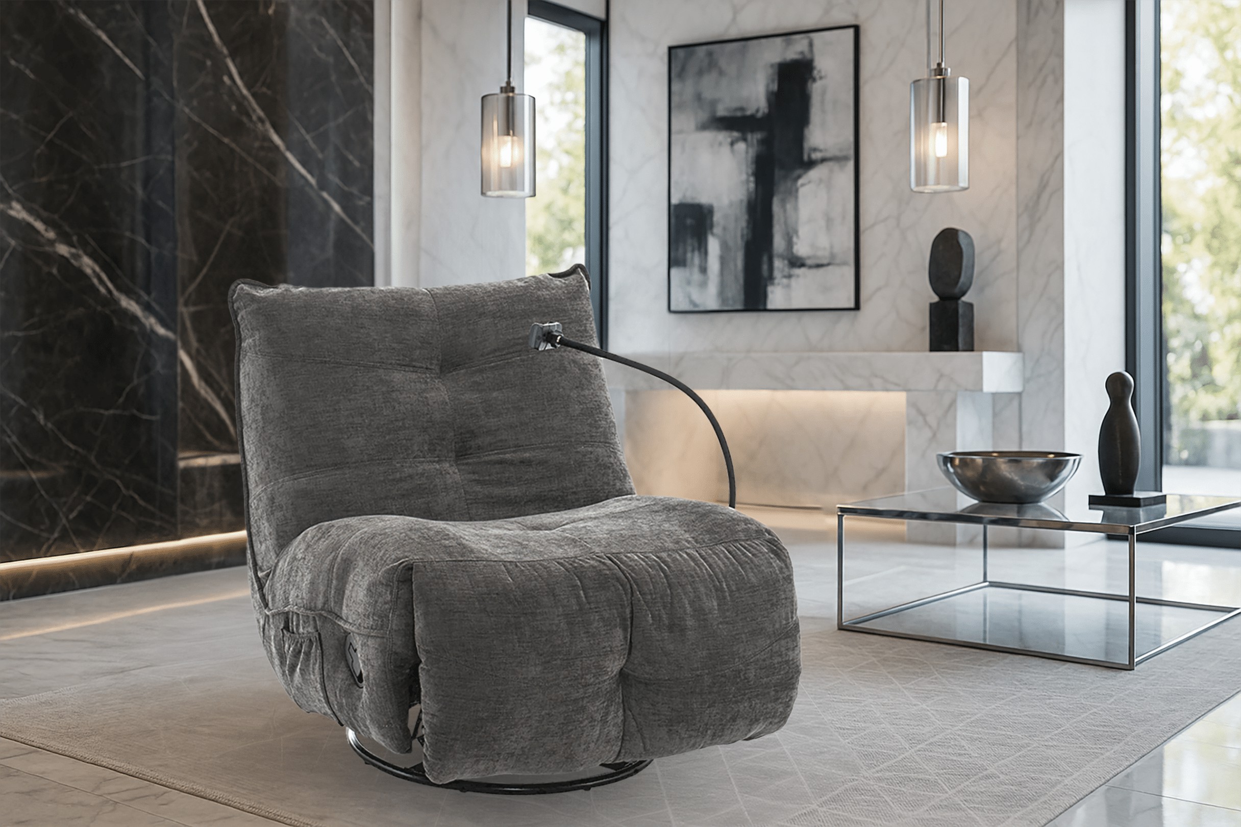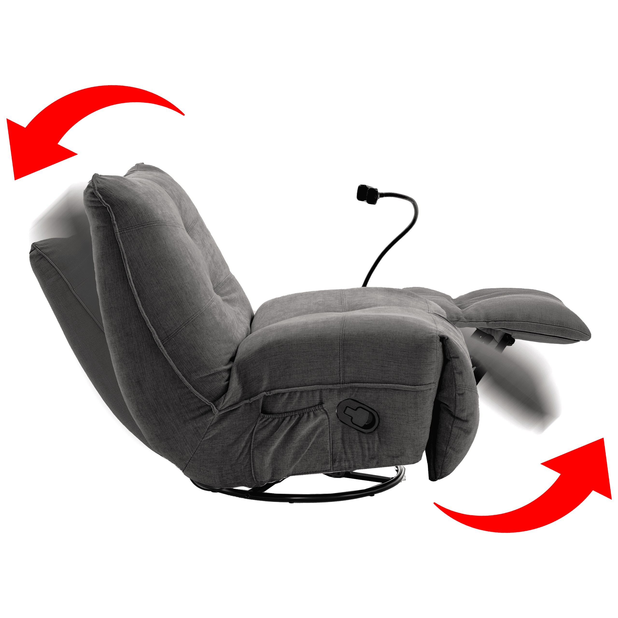 Удобное кресло для отдыха, сочетающее в себе функцию раскладывания и вращающуюся основу, что обеспечивает комфортное положение для релаксации. Мягкая ткань из шенила придает интерьеру уютный характер, а профилированная спинка поддерживает спину во время ежедневного отдыха.