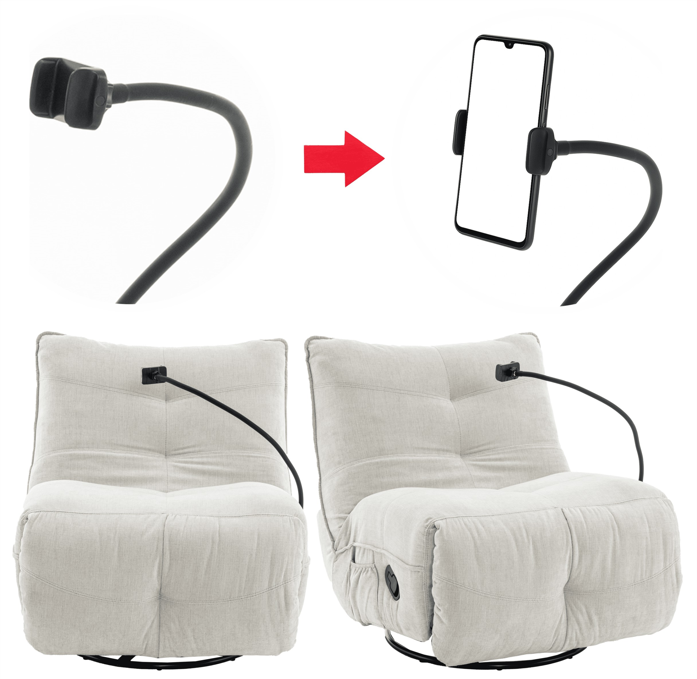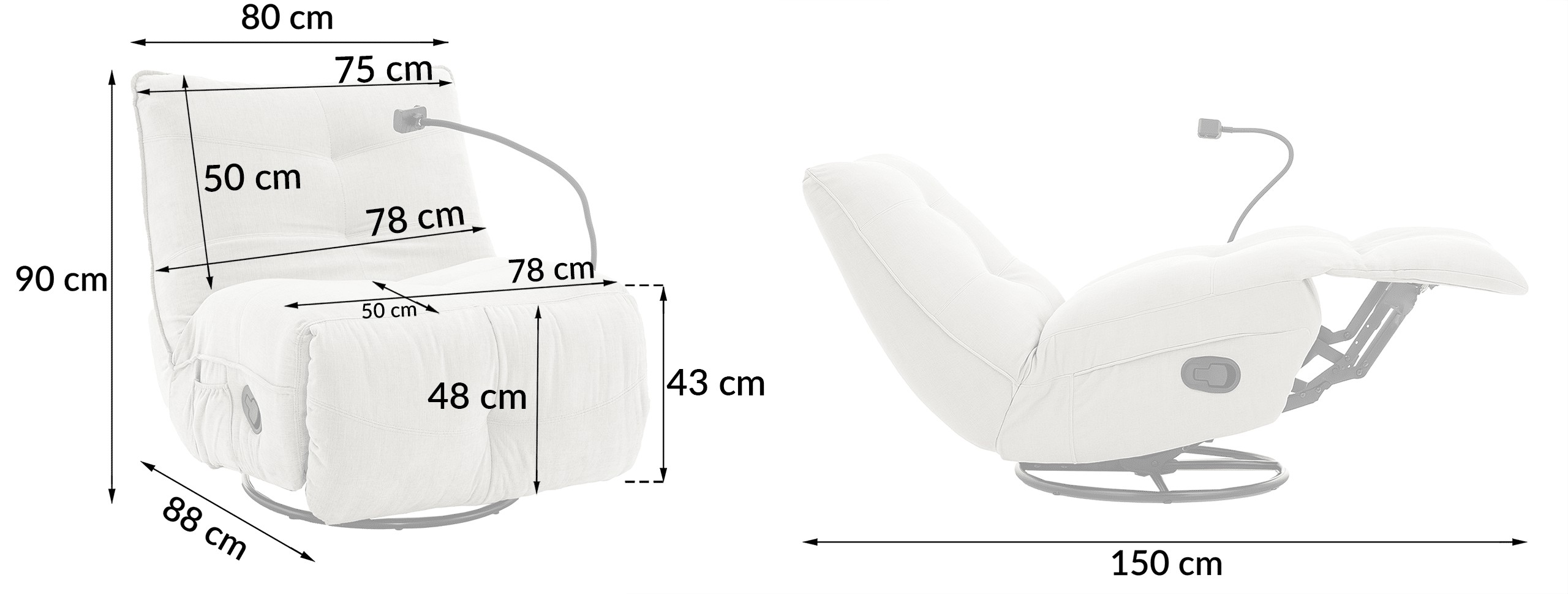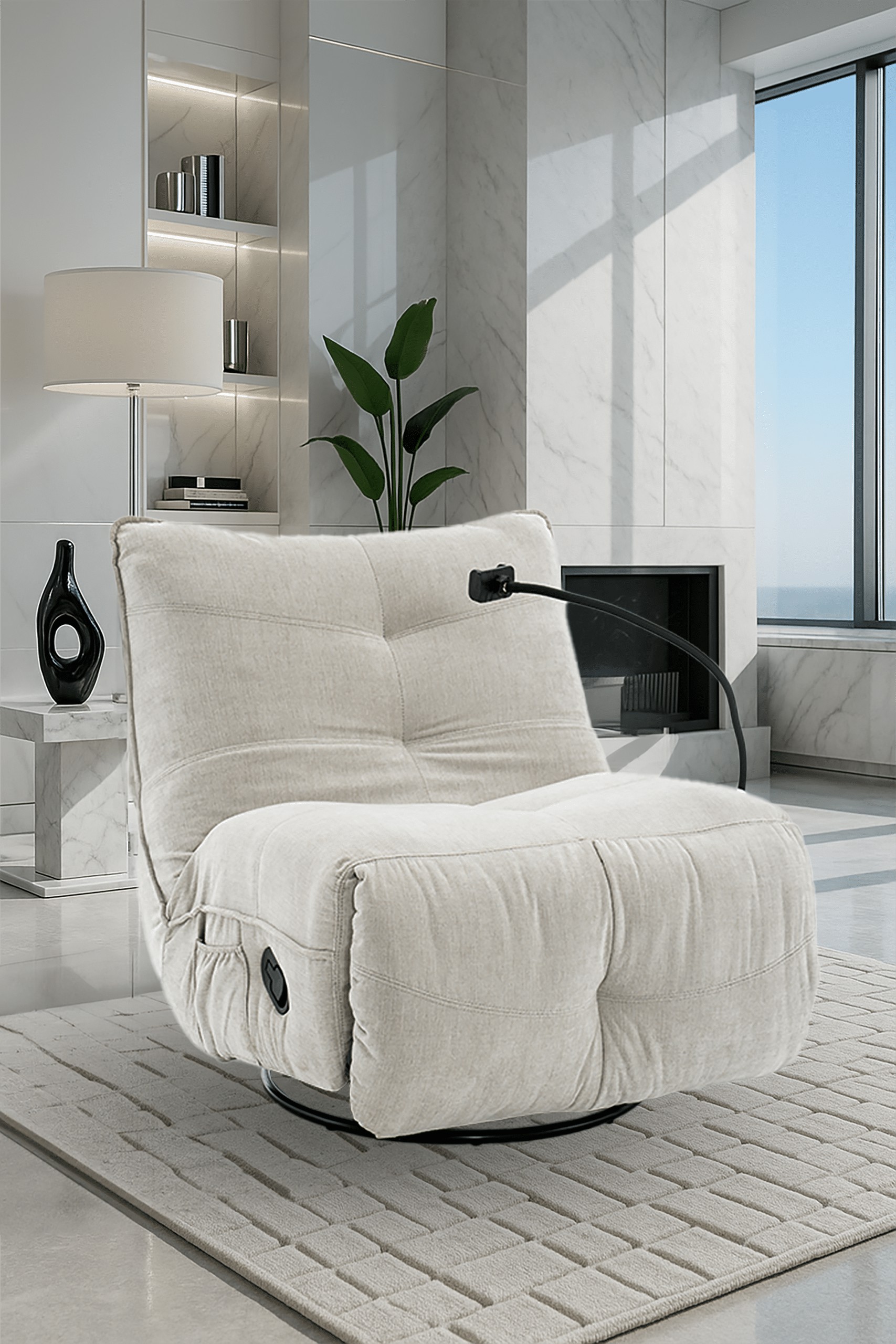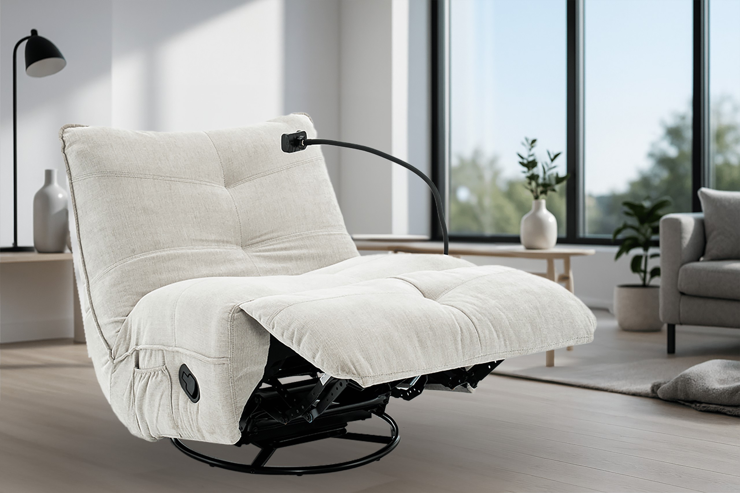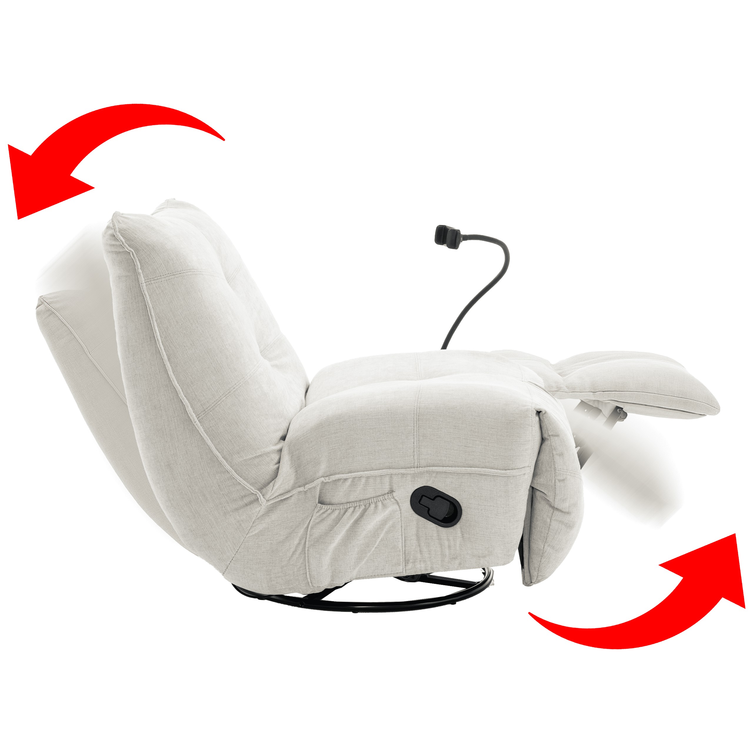 Удобное кресло для отдыха с функцией раскладывания и вращающейся основой, созданное для повседневного отдыха. Мягкая ткань из шенила и профилированная спинка обеспечивают комфорт при использовании и приятный, современный внешний вид.