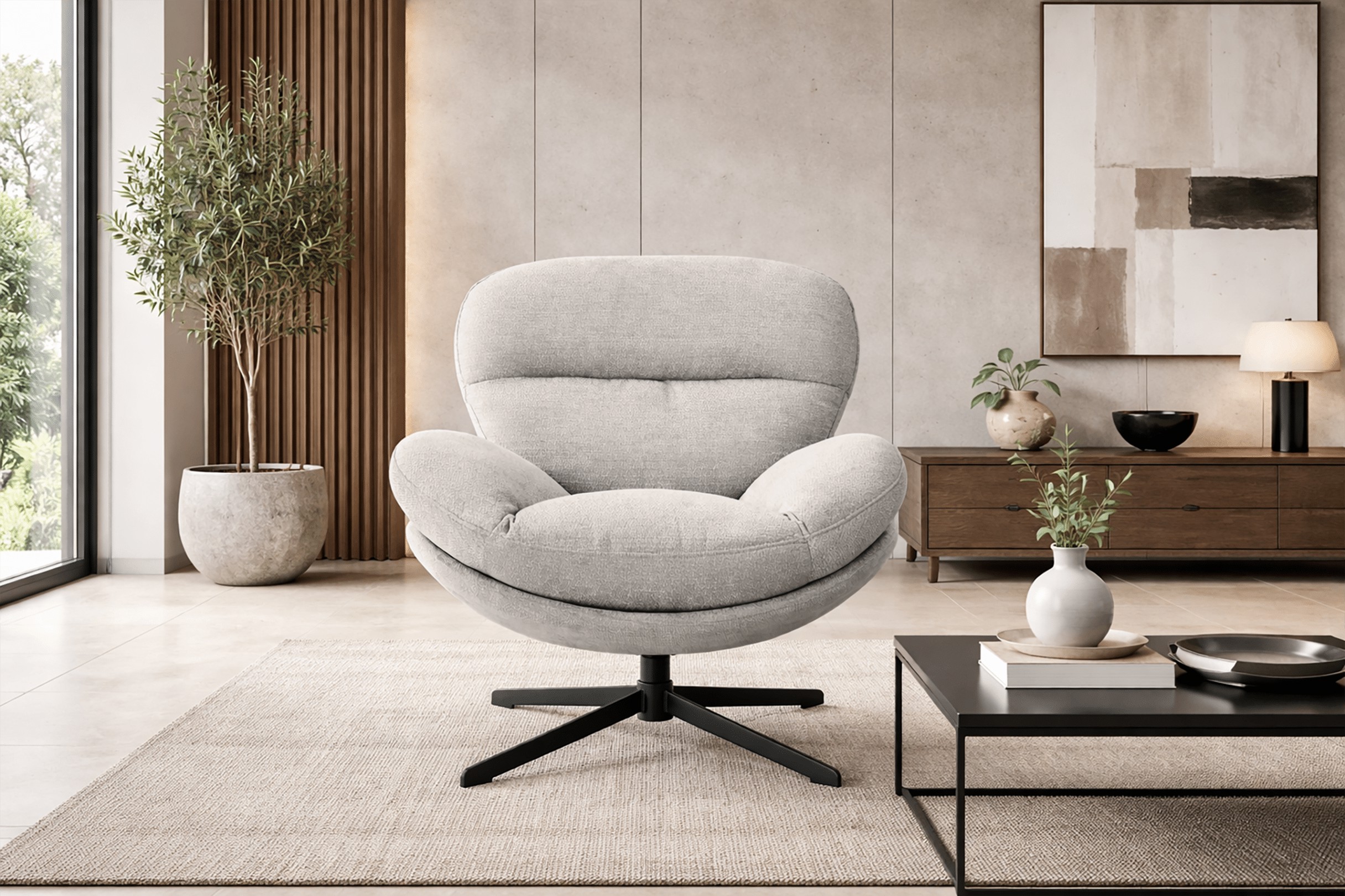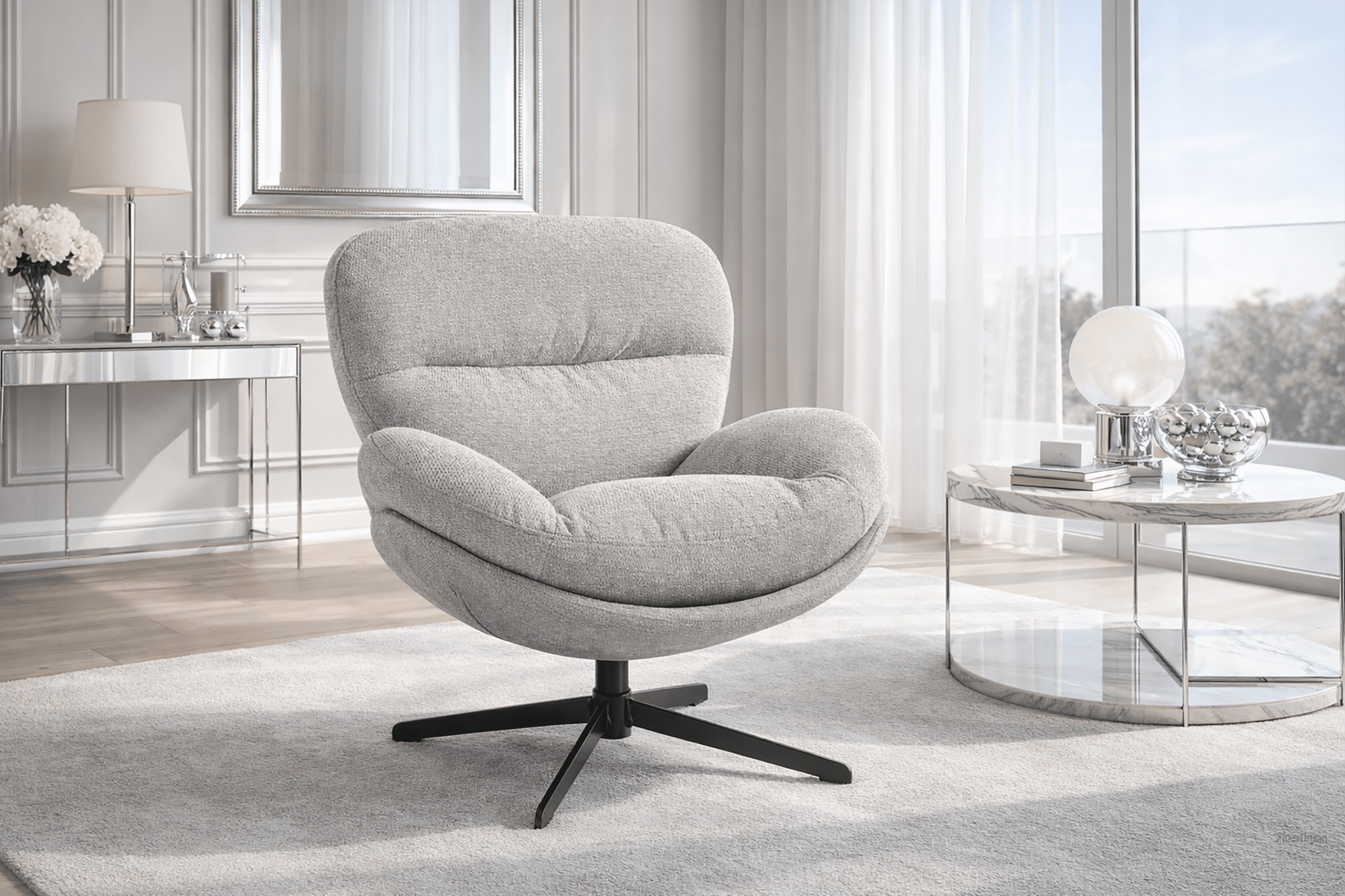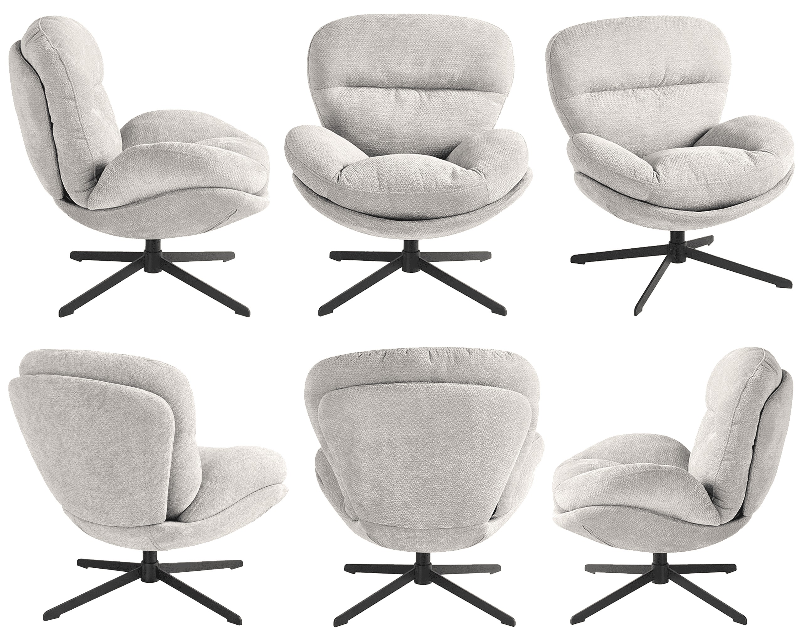 FO107 КРЕСЛО NESTРазмер: 76x79x86 смКресло состоит из двух частей: каркас из фанеры, обтянутый пенопластом и обитый тканью-шенилом; сиденье представляет собой подушку, наполненную мягкой губкой; обивочный материал — мягкая ткань-шенилСтальная ножка с функцией поворота на 360 градусов, без регулировки высоты.Максимальная нагрузка: 120 кг