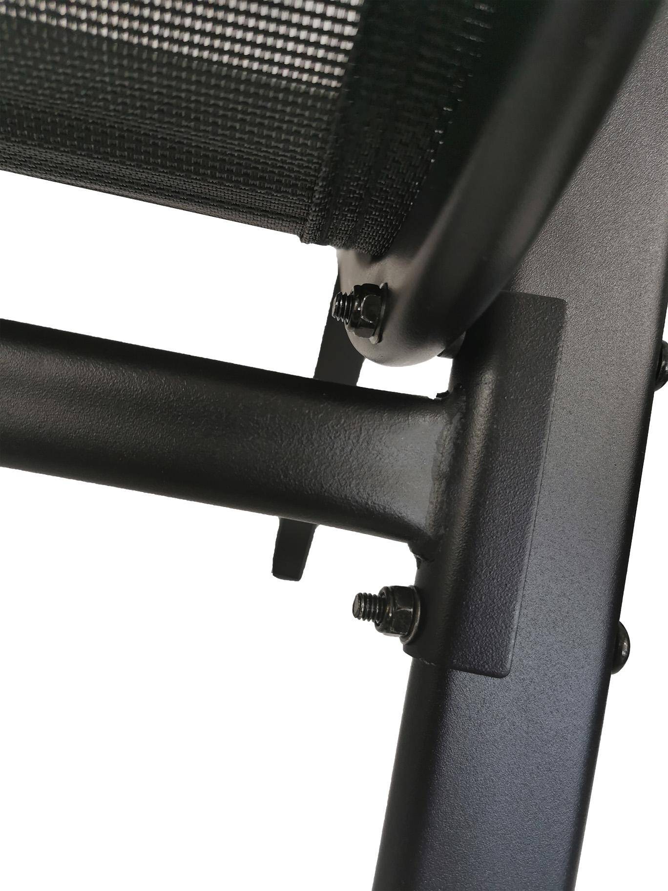 Каркас из порошковой окраски обеспечивает долговечность и устойчивость к погодным условиям. Сиденье из ткани текстилен не только удобно, но и легко чистится.