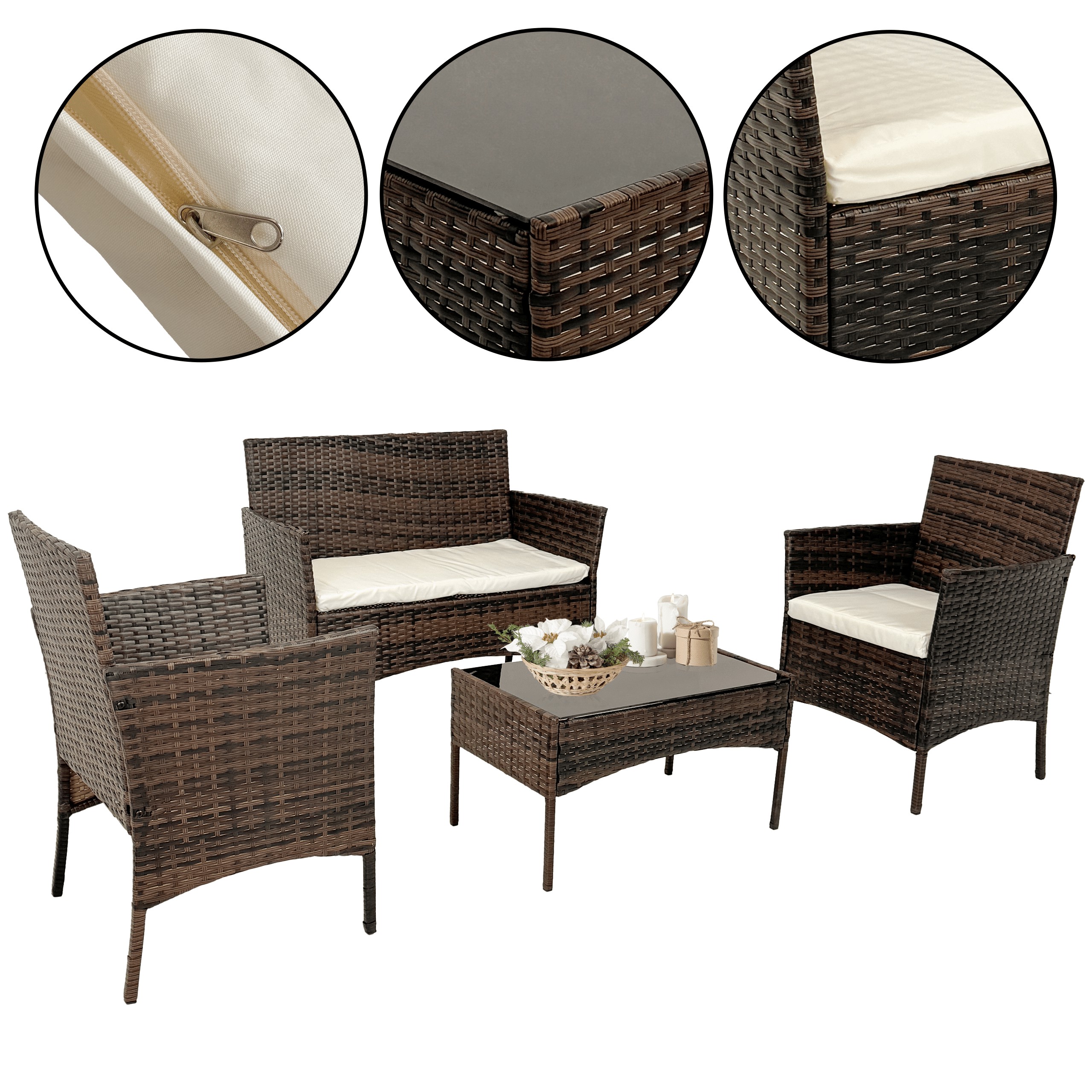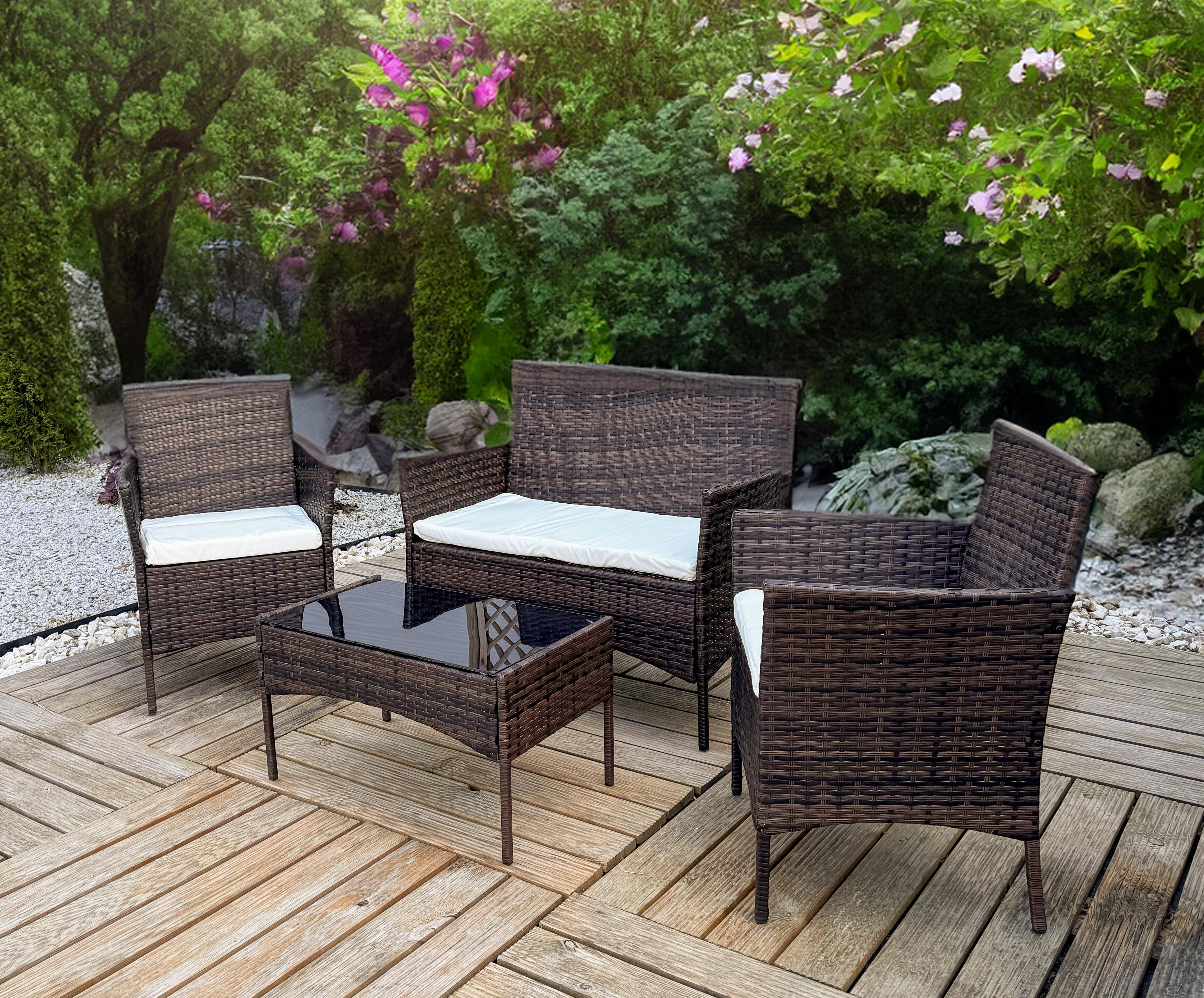 Создайте уютное и стильное пространство с помощью нашего набора садовой мебели, который идеально подойдет для террасы, балкона или сада. В набор входит прочный стол, а также удобные стулья и диван, которые поразят вас своим современным дизайном и функциональностью.Мебель была разработана с учетом долговечности и устойчивости к переменчивым погодным условиям. Простой, но элегантный дизайн позволяет комплекту идеально вписаться в любой сад. Его универсальная цветовая гамма подходит к множеству стилей оформления, от классического до современного. Благодаря этому вы с легкостью сможете адаптировать комплект к своему пространству.Набор не только красив, но и функционален. Мебель легкая, удобная для переноски и в то же время очень устойчивая. Она идеально подойдет как для повседневного отдыха, так и для организации более масштабных встреч на свежем воздухе.