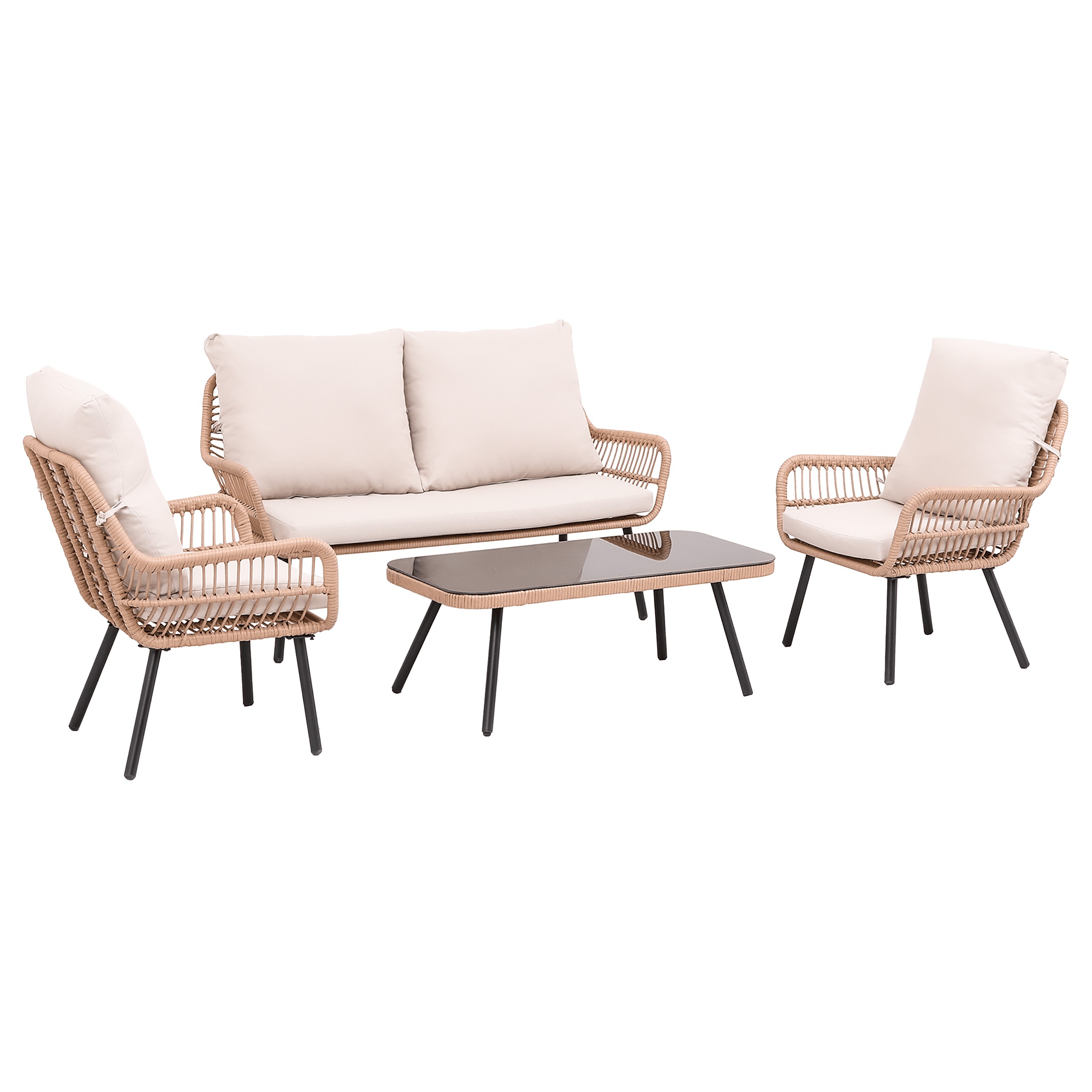 ✅ Высококачественный техноротан✅ Современный дизайн — стильный бежевый цвет и элегантная отделка позволяют комплекту идеально вписаться в любое пространство.✅ Удобные подушки — толстые, мягкие сиденья и спинки обеспечивают максимальный комфорт использования, обитаемые водоотталкивающей тканью из олефина✅ Функциональный журнальный столик – оснащен столешницей из закаленного стекла, которая устойчива к повреждениям и проста в уходе.✅ Компактный и практичный – комплект отличается небольшим весом, благодаря чему его можно легко перемещать в любое место. Идеально подходит как для небольших, так и для просторных помещений.