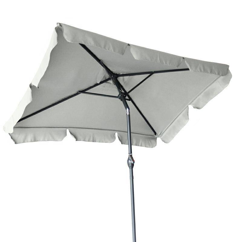 Прямоугольный садовый зонт DENVER, цвет: серый- Стальной каркас- Купол изготовлен из прочного водонепроницаемого материала, обеспечивающего защиту от солнца с коэффициентом UV 20+- Удобная рукоятка для складывания и раскладывания- Регулируемый угол наклона купола- Вентилируемая верхняя часть купола- Материал: полиэстер 160 г/м²Размеры:- Размер купола: 2 x 1,3 м- Общая высота: 2,1 м