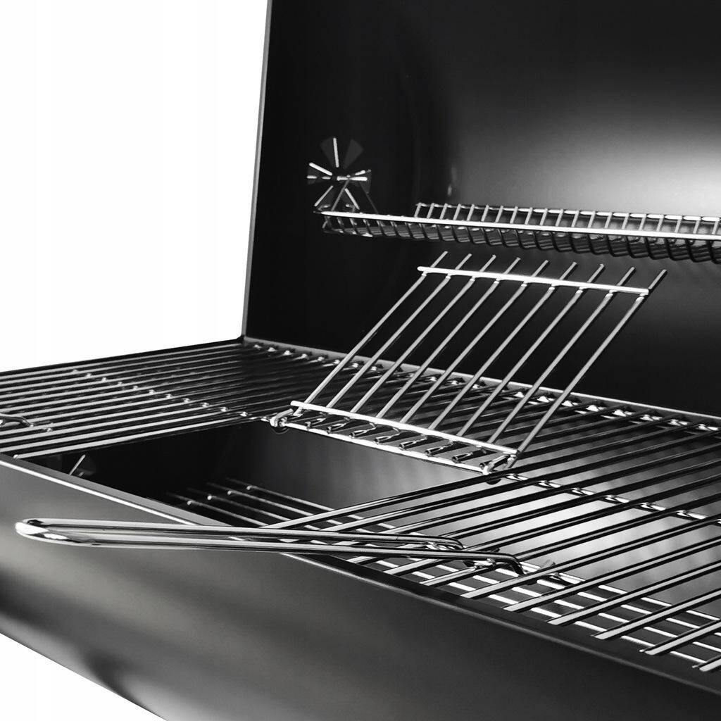 Благодаря большим размерам и мобильной конструкции на колесах гриль отлично подойдет как для семейных встреч в саду, так и для более крупных мероприятий на открытом воздухе. Использованная порошковая окраска стали обеспечивает долговечность, термостойкость и простоту очистки.