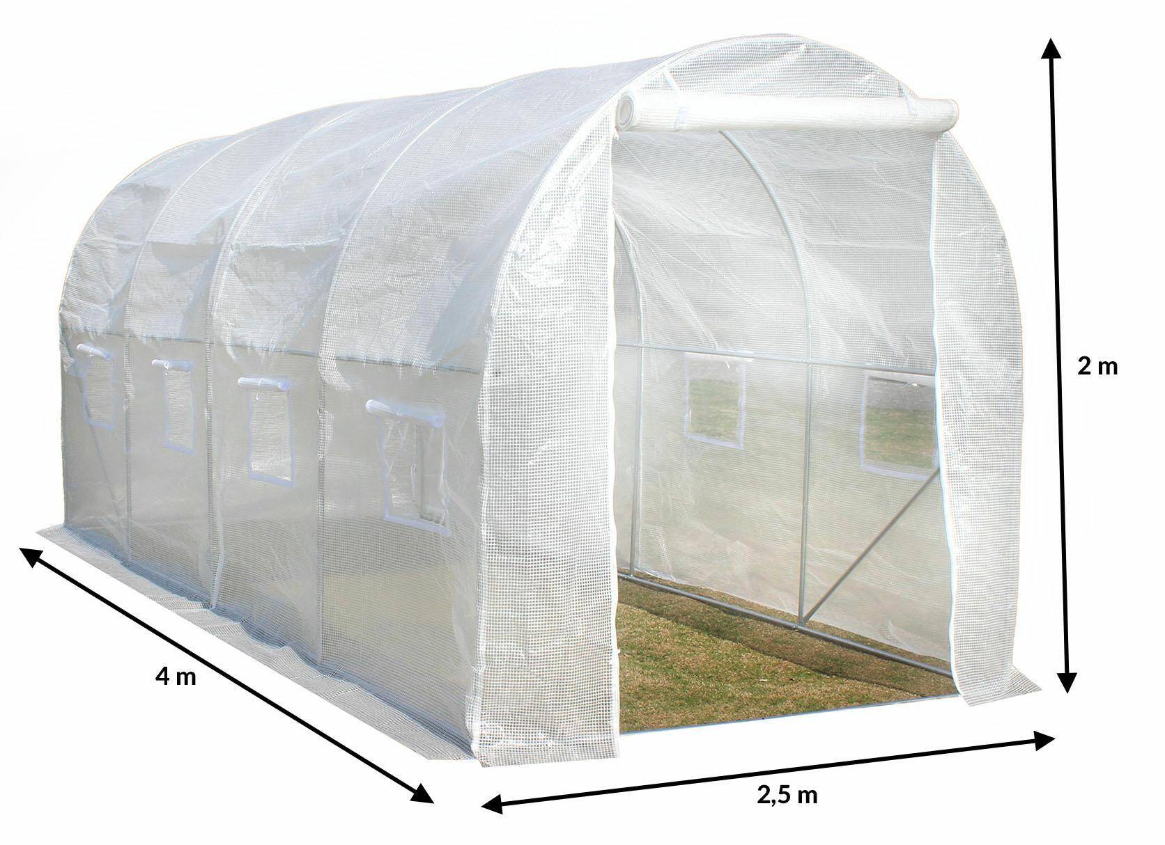 Основные характеристики продукта:✅ Металлические, двусторонне оцинкованные профили обеспечивают устойчивость конструкции и защищают от коррозии.✅ Покрытие из полиэтиленовой пленки плотностью 140 г/м² с УФ-фильтром 4 и вплетенной сеткой из полипропилена — устойчиво к повреждениям и разрывам.✅ Прочные вшитые молнии для закрытия туннеля.✅ Система циркуляции воздуха — закрывающиеся окна с москитными сетками позволяют контролировать температуру и влажность.✅ Наземный фартук — удлинение каждой стенки для засыпки песком с целью стабилизации туннеля.✅ Липучки, крепящие пленку к основанию конструкции, обеспечивают идеальное натяжение.✅ Оптимальная высота 2 м позволяет свободно передвигаться и работать в туннеле.✅ Роллетные двери с двойной застежкой-молнией.