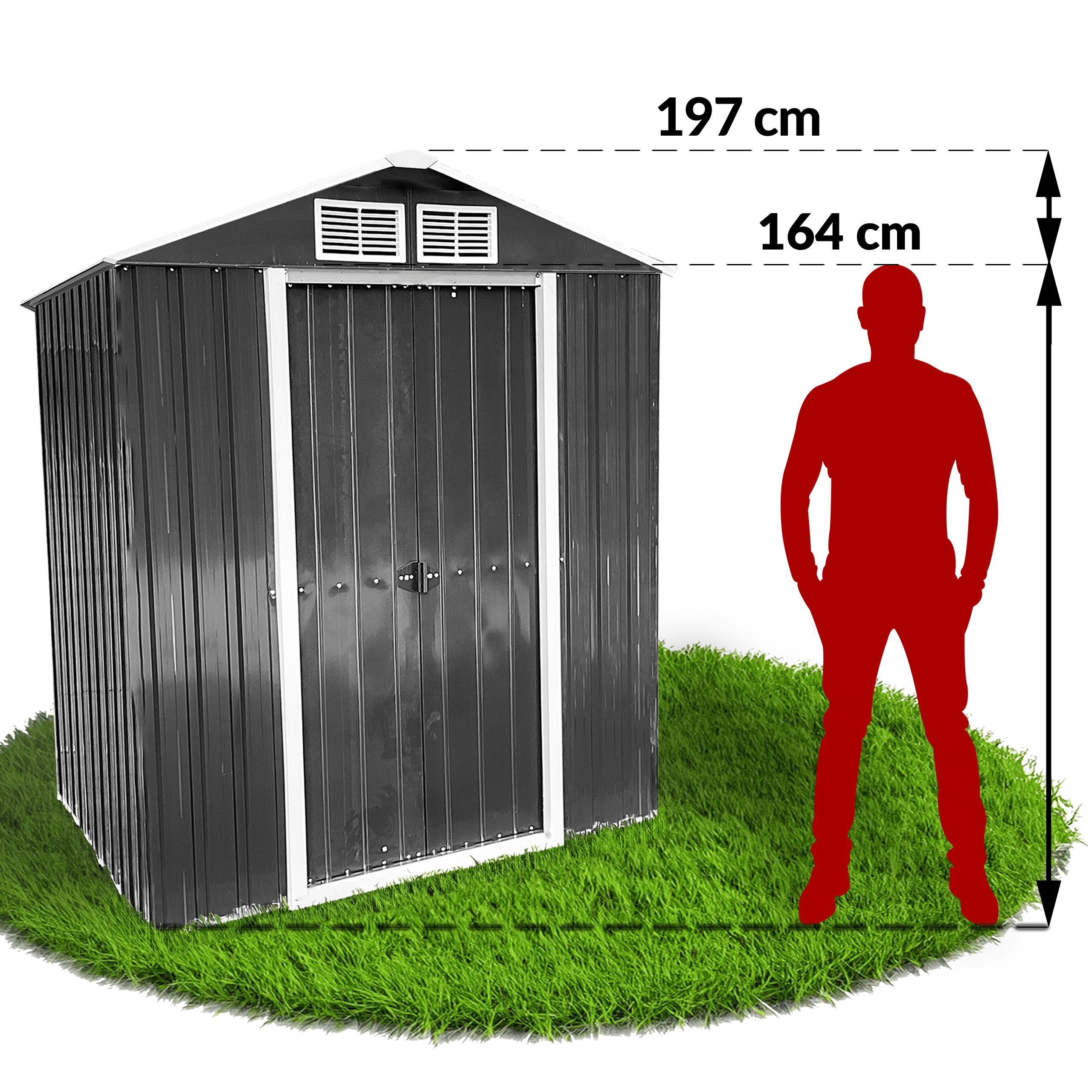 Металлический сарай DM1000 — это прочная, функциональная и эстетичная конструкция, которая поможет поддерживать порядок в саду и защитит ваше оборудование от воздействия погодных условий.