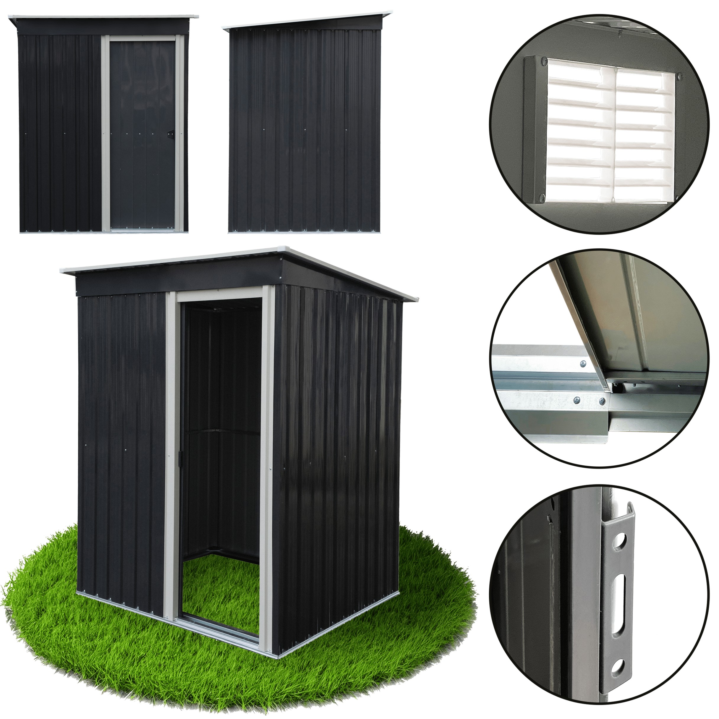 Компактный и прочный металлический садовый домик — это практичное решение для хранения основных инструментов, садовых принадлежностей или небольшого оборудования. Благодаря продуманной конструкции он отлично подойдет для придомового сада, дачного участка или хозяйственной зоны.