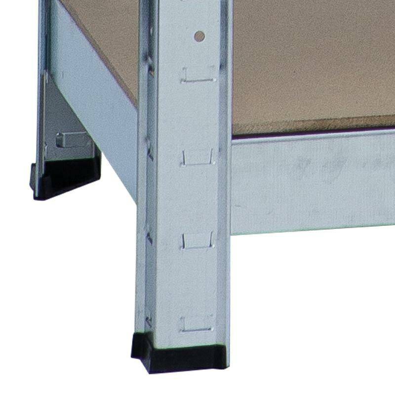 В комплект входит 8 защитных накладок, которые защищают пол от царапин. Стеллаж стоит устойчиво даже при большой нагрузке, а его стальная конструкция обеспечивает долговечность на долгие годы. Благодаря функциональности и эстетичной отделке стеллаж идеально подойдет как для промышленных помещений, так и для домашних мастерских.