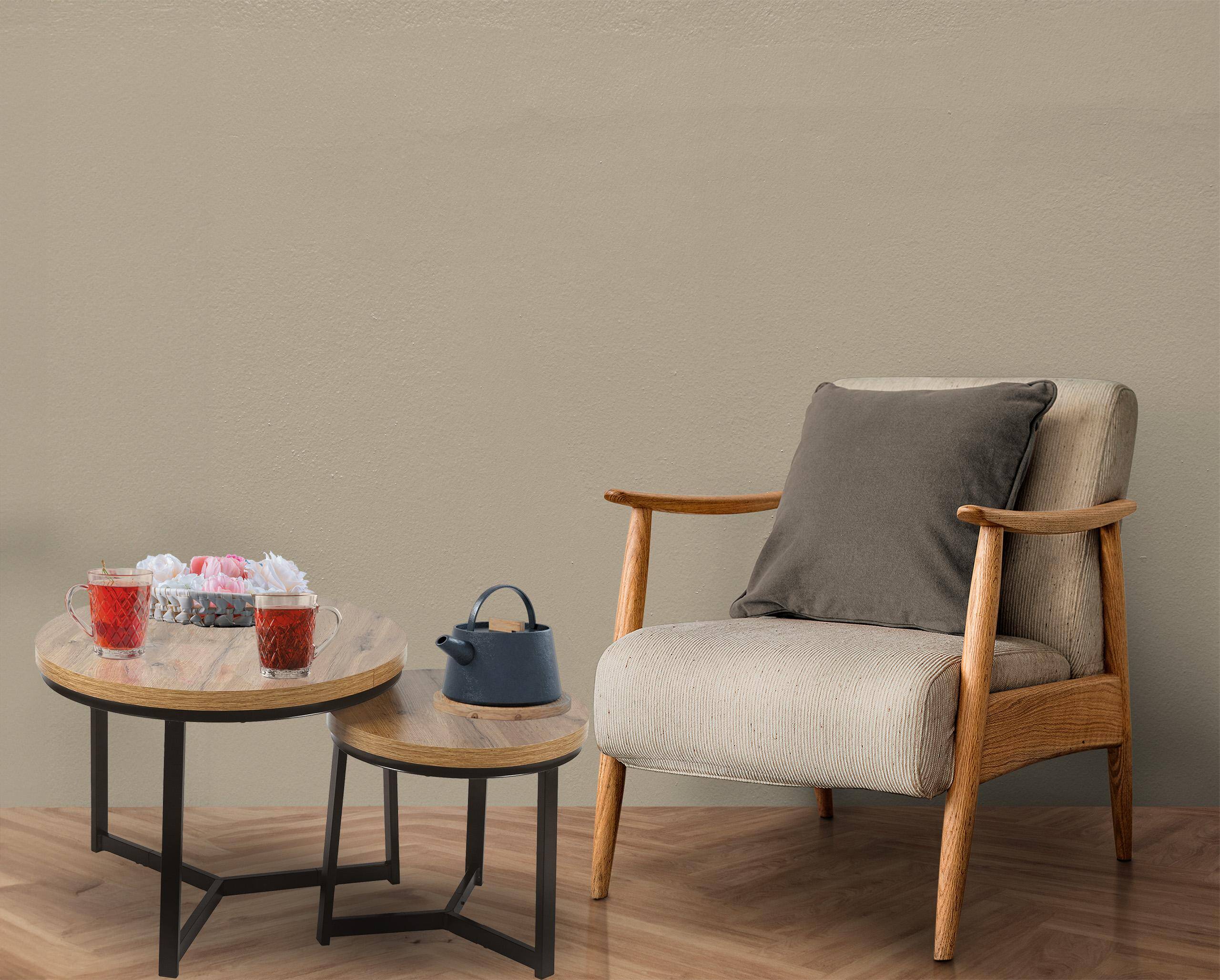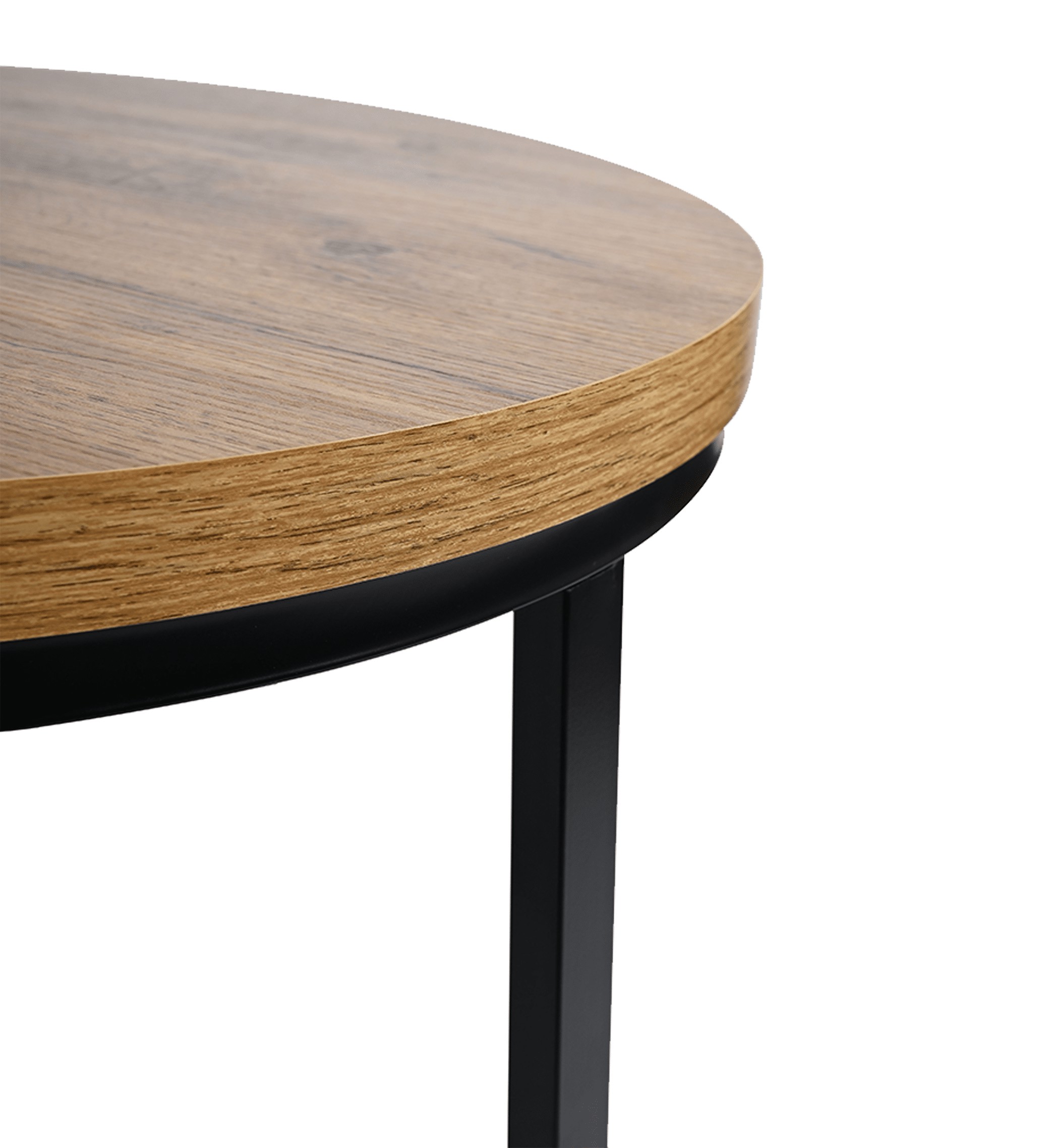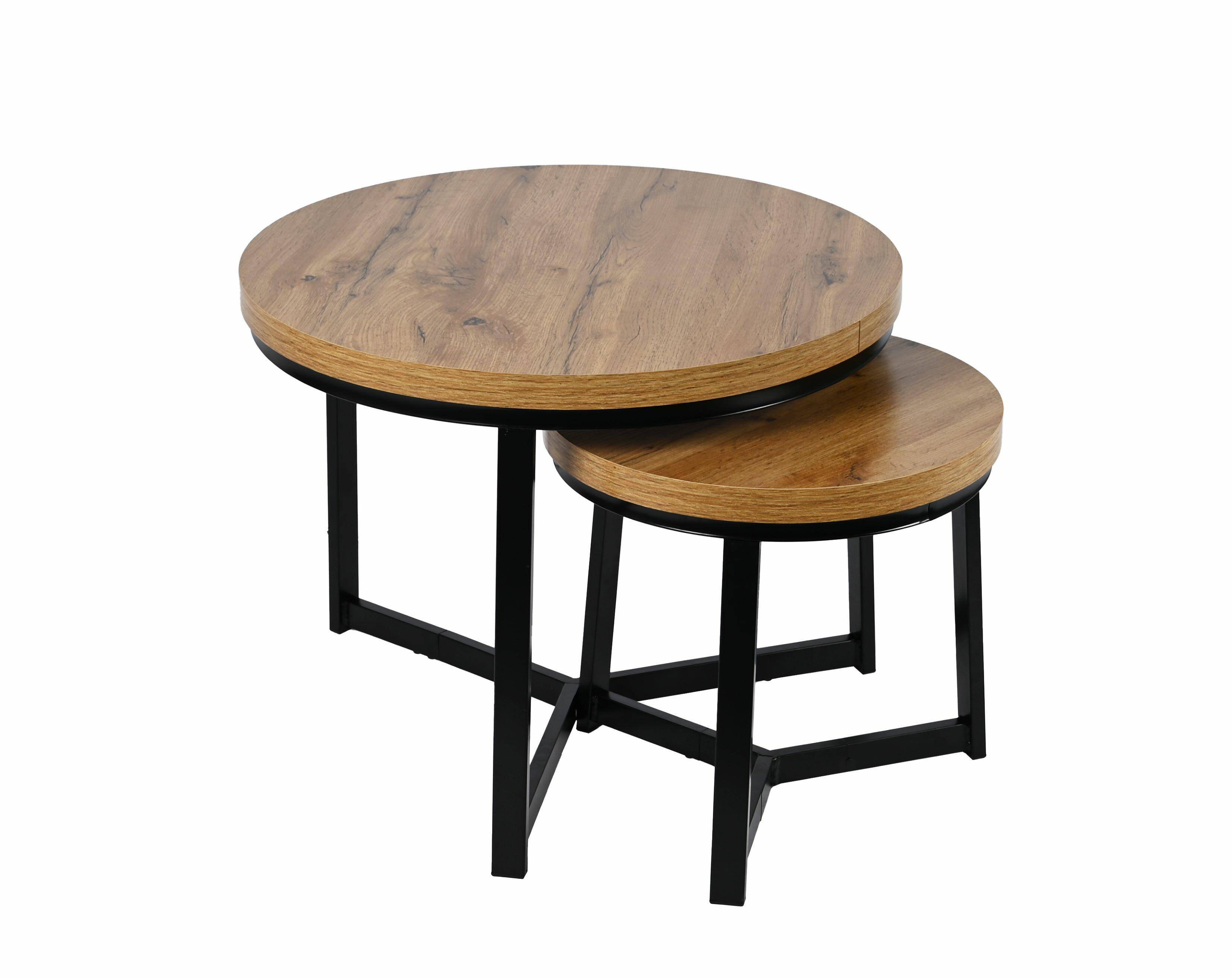 Благодаря прочным материалам, таким как МДФ под дуб, и устойчивым стальным ножкам черного цвета, набор отличается прочной конструкцией и устойчивостью к повседневной эксплуатации. Этот круглый столик идеально вписывается в интерьеры в скандинавском и индустриальном стилях, благодаря чему он подойдет как для современной гостиной, так и для более минималистичных пространств.